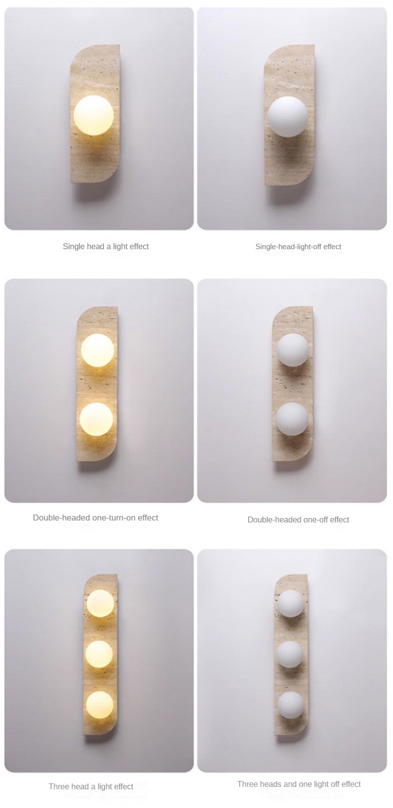 • Elegant Multi-Head Natural Stone Design: This versatile 1/2/3 heads natural stone wall lamp showcases exquisite craftsmanship through its modular design featuring genuine yellow travertine and warm wood accents. The wall lamp offers flexible configuration options with single, double, or triple head arrangements, allowing you to create custom lighting solutions that perfectly suit your space requirements. Each head features unique natural veining patterns that ensure every piece is distinctly elegant, bringing organic sophistication to any interior setting. Available in W100L180MM, W100L280MM, and W100*L480MM sizes with custom options, this wall lamp provides exceptional versatility while maintaining its luxurious appeal as a statement lighting piece for both residential and commercial applications.