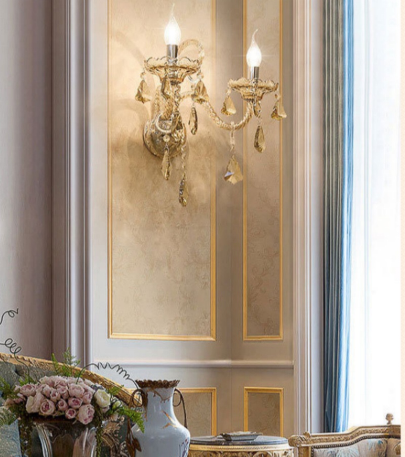 - Durable Craftsmanship with Refined Sparkle: Each fixture is constructed from a robust iron frame, high-quality glass, and carefully arranged crystal elements. This premium material combination ensures lasting durability while the crystals refract light beautifully. The Amber Crystal Wall Light is built to be a lasting statement piece, offering both structural integrity and captivating brilliance.
