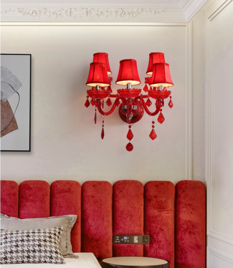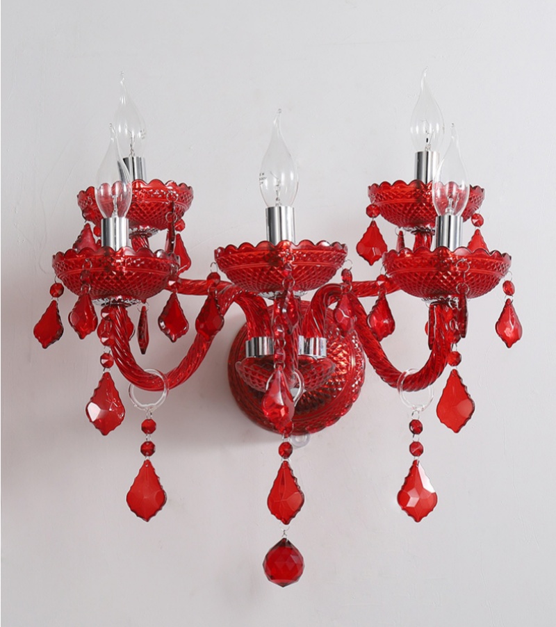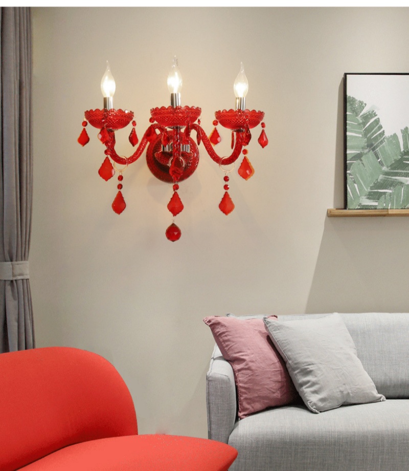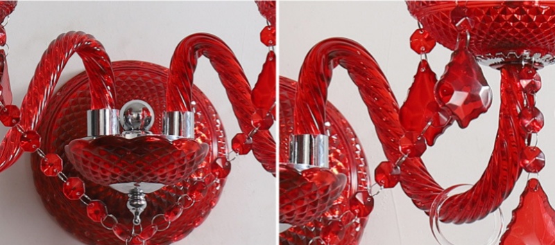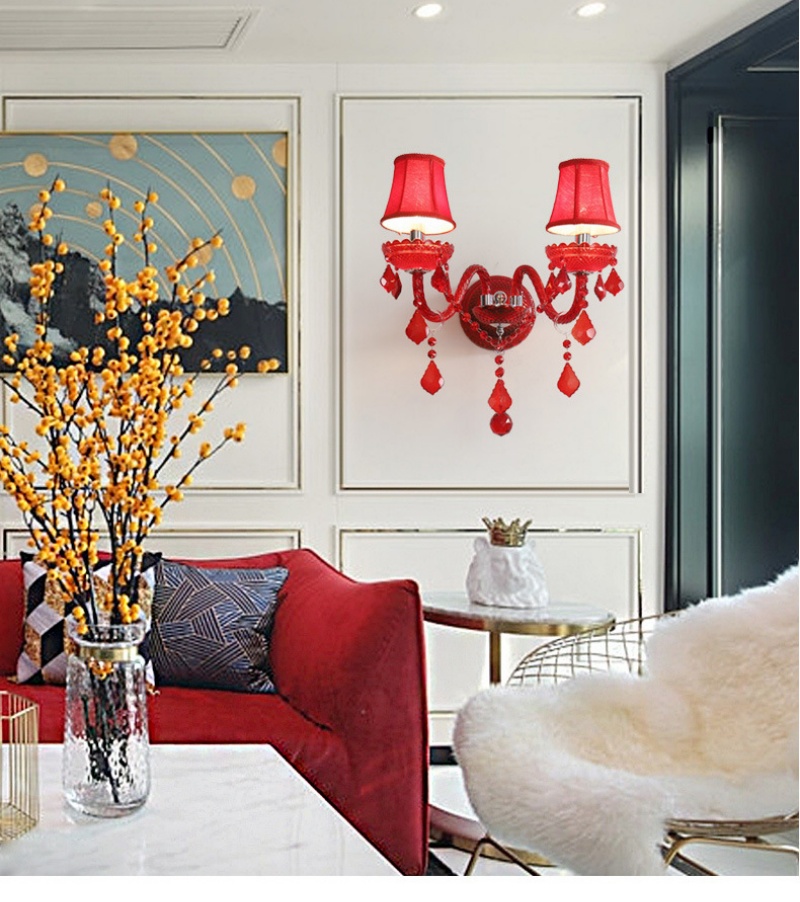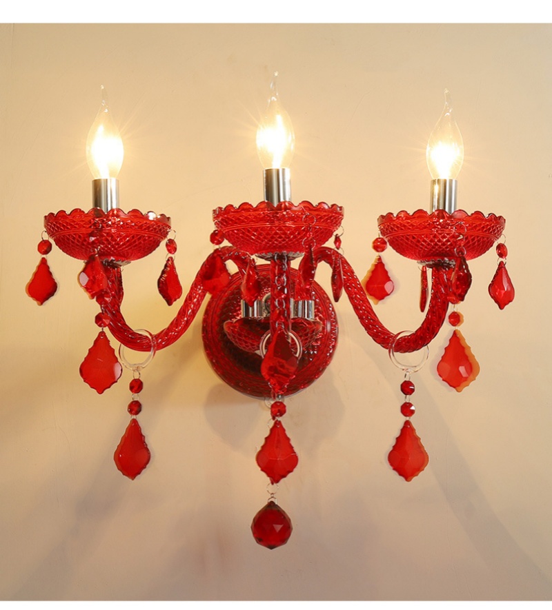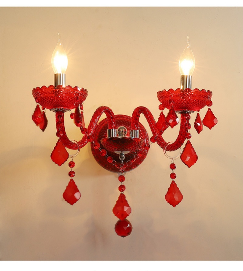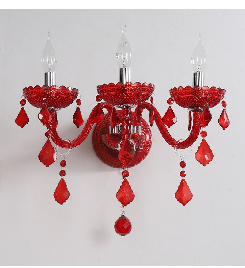 - Vibrant Red Crystal & Robust Construction: The defining feature of this lamp is its exquisite red crystal glass shades, paired with a sturdy iron frame. This combination delivers a bold pop of color and luxurious sparkle, while ensuring long-lasting durability. The rich red hue makes this Red Crystal Glass Wall Lamp a dramatic yet sophisticated choice for adding warmth and character to both residential and commercial interiors.