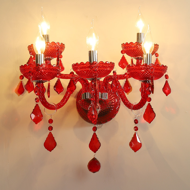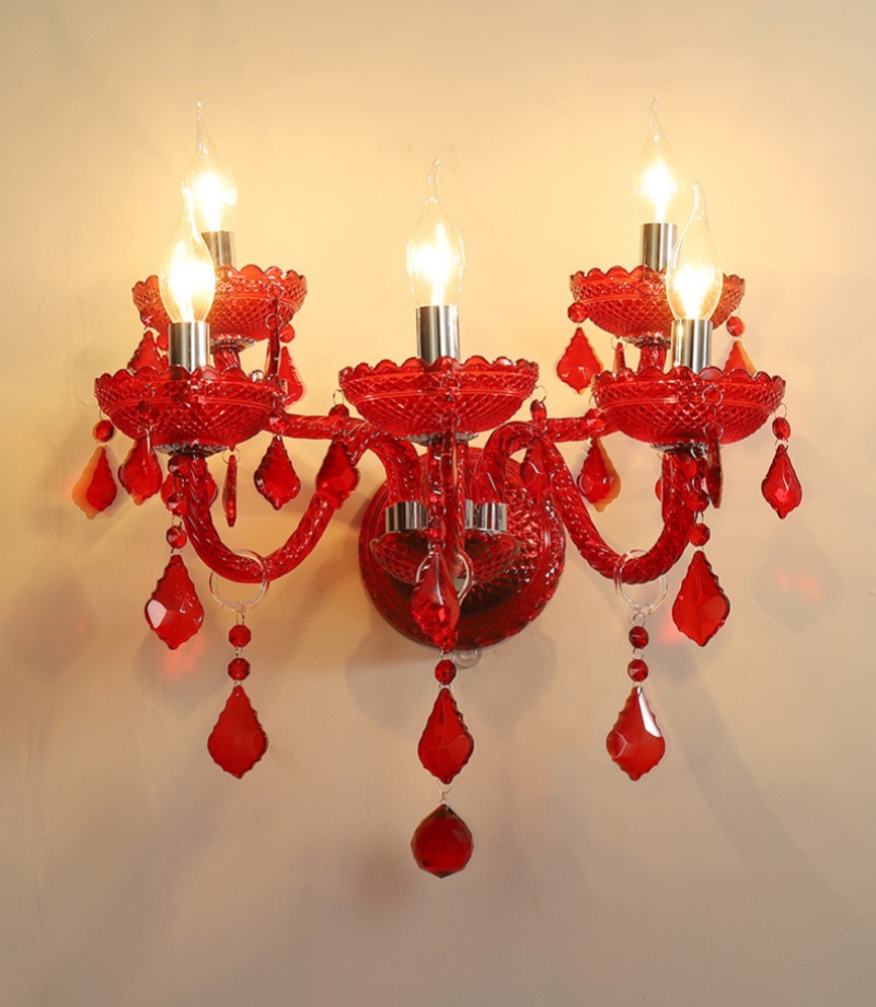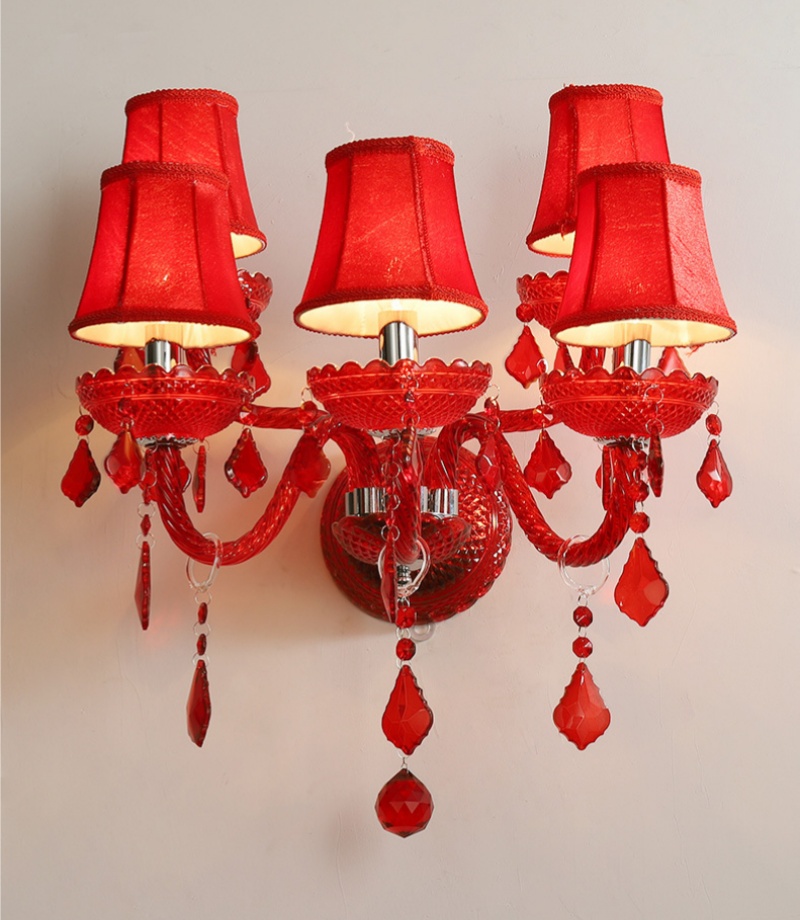1-5 Heads Red Crystal Glass Wall Lamp