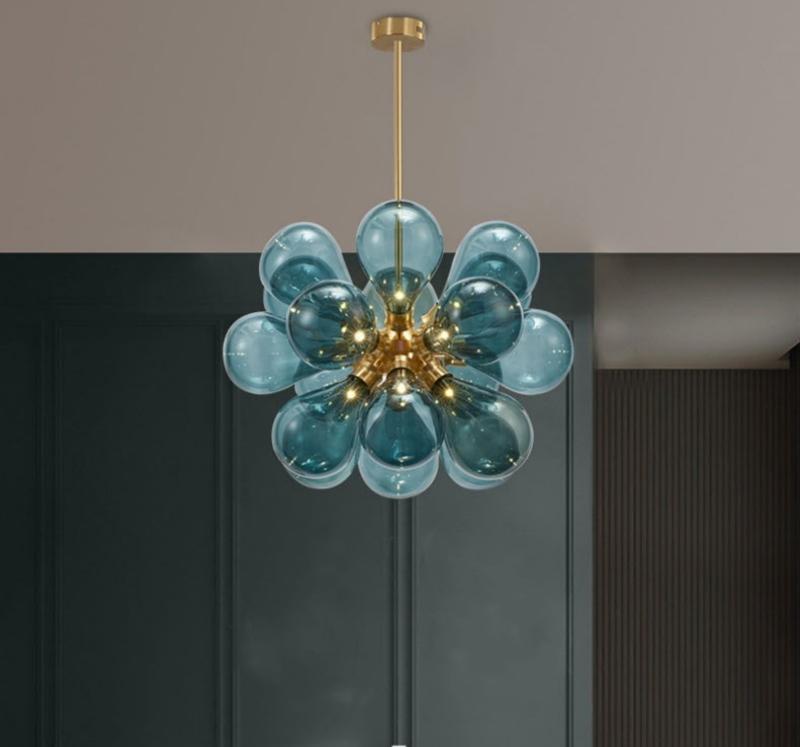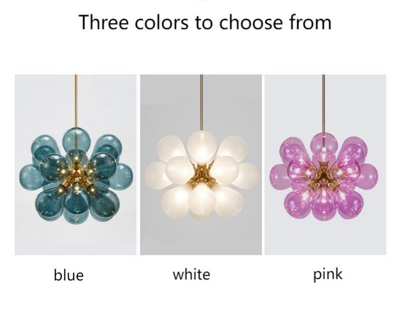 - Elegant Color Options and Quality Construction: Available in three sophisticated colors – Blue, Pink, and White – this pendant lamp offers versatile styling options to match various interior themes. Each shade combines durable iron framework with delicate glass, creating a perfect balance between strength and refinement. The pendant lamp’s construction ensures long-lasting performance while maintaining its aesthetic appeal over time.