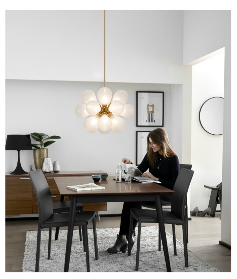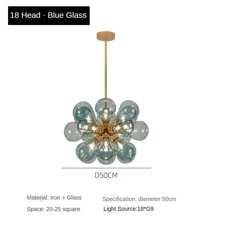 - Dramatic Multi-Light Design: This 18 Heads Iron Glass Pendant Lamp creates a stunning visual statement with its elaborate arrangement of 18 individual lights. The pendant lamp features a beautifully coordinated cluster design that brings both grandeur and contemporary elegance to any space. Perfect as a centerpiece in larger areas, this multi-head pendant lamp provides exceptional illumination while serving as a remarkable work of art that transforms ordinary rooms into extraordinary spaces.