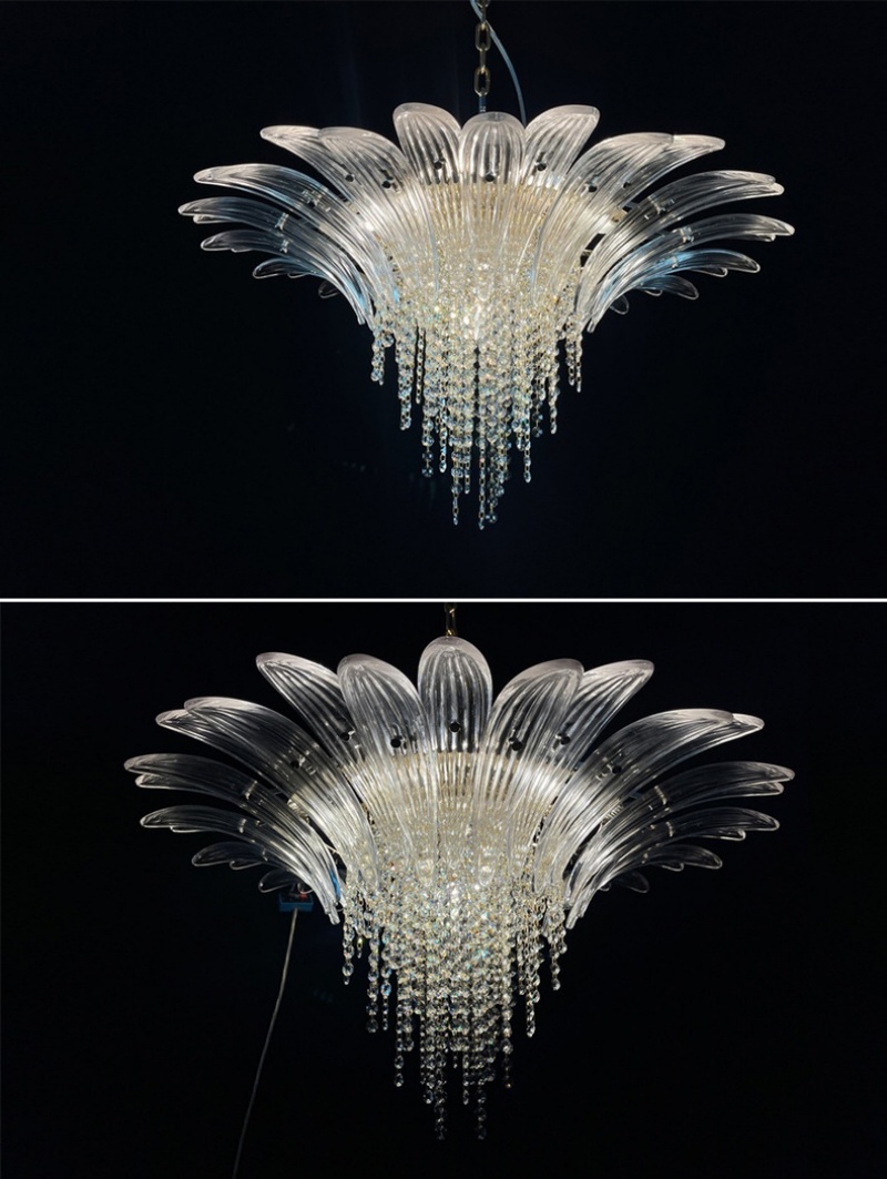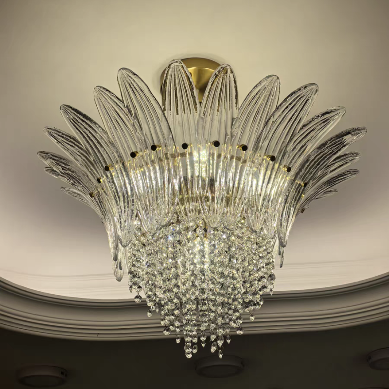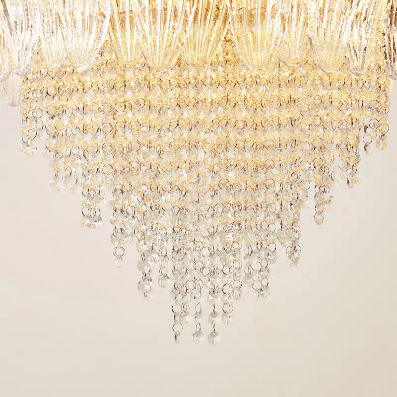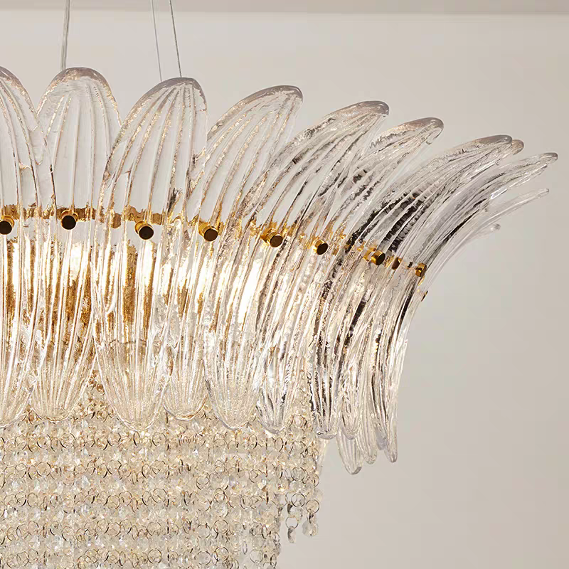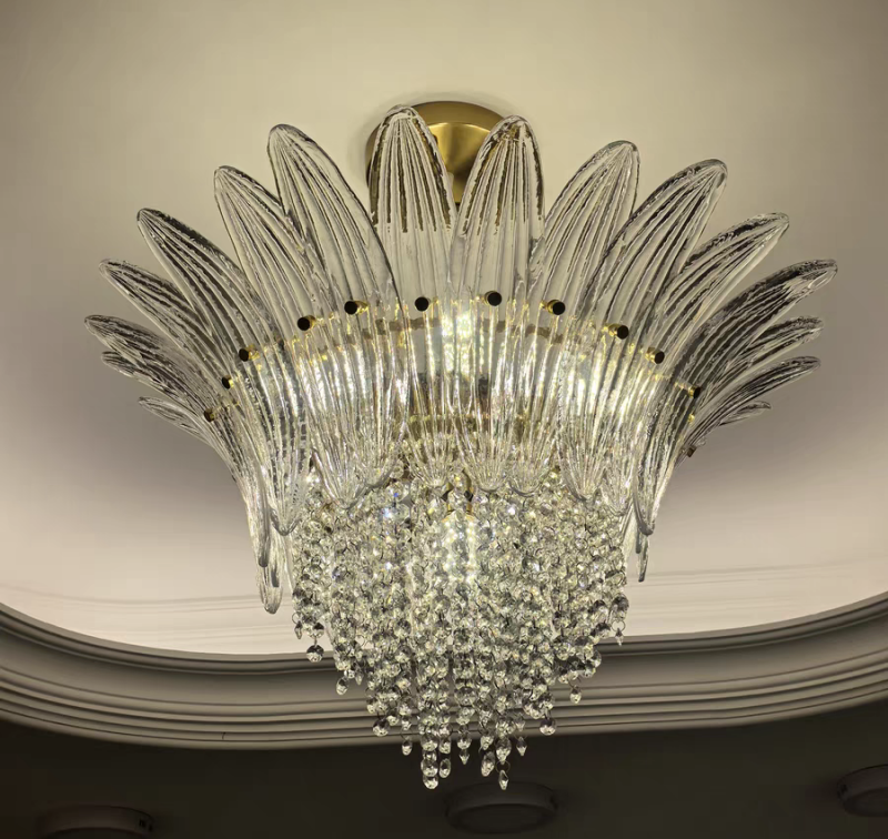 - Customizable Configuration and Luxurious Finishes: This pendant lamp is defined by its flexibility, offering both single-layer and double-layer designs in multiple diameters to perfectly suit your ceiling height and spatial requirements. The option to choose between a warm Copper finish or a minimalist transparent framework allows this pendant lamp to seamlessly integrate into your existing decor, whether it leans towards classic opulence or contemporary chic. Each component of this pendant lamp is crafted with precision, ensuring that the glass, crystal, and metal elements come together in harmonious elegance. The ability to custom order sizes makes this pendant lamp a truly personalized lighting solution.