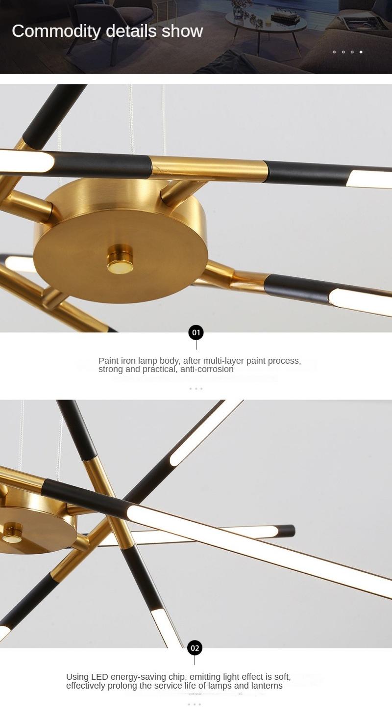 - Elegant Dual-Tone Pendant Lamp: This 6-12 Heads Black Gold Iron Pendant Lamp showcases a sophisticated contemporary design that creates a striking visual statement through its elegant black and gold color contrast. Featuring durable iron components with a luxurious dual-tone finish, this pendant lamp delivers both modern aesthetics and functional illumination, making it perfect for restaurants, bars, retail spaces, kitchen islands, and upscale residential areas seeking refined lighting solutions.