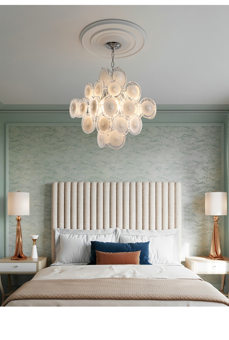 - Modern Cluster Design: This pendant light features a stunning arrangement of six white glass shades in a cohesive cluster. Its geometric form creates a striking focal point, ideal for illuminating dining areas, living rooms, and hotel lobbies. The compact design ensures powerful presence without occupying excessive space, making this pendant lamp a perfect blend of modern art and functional lighting.