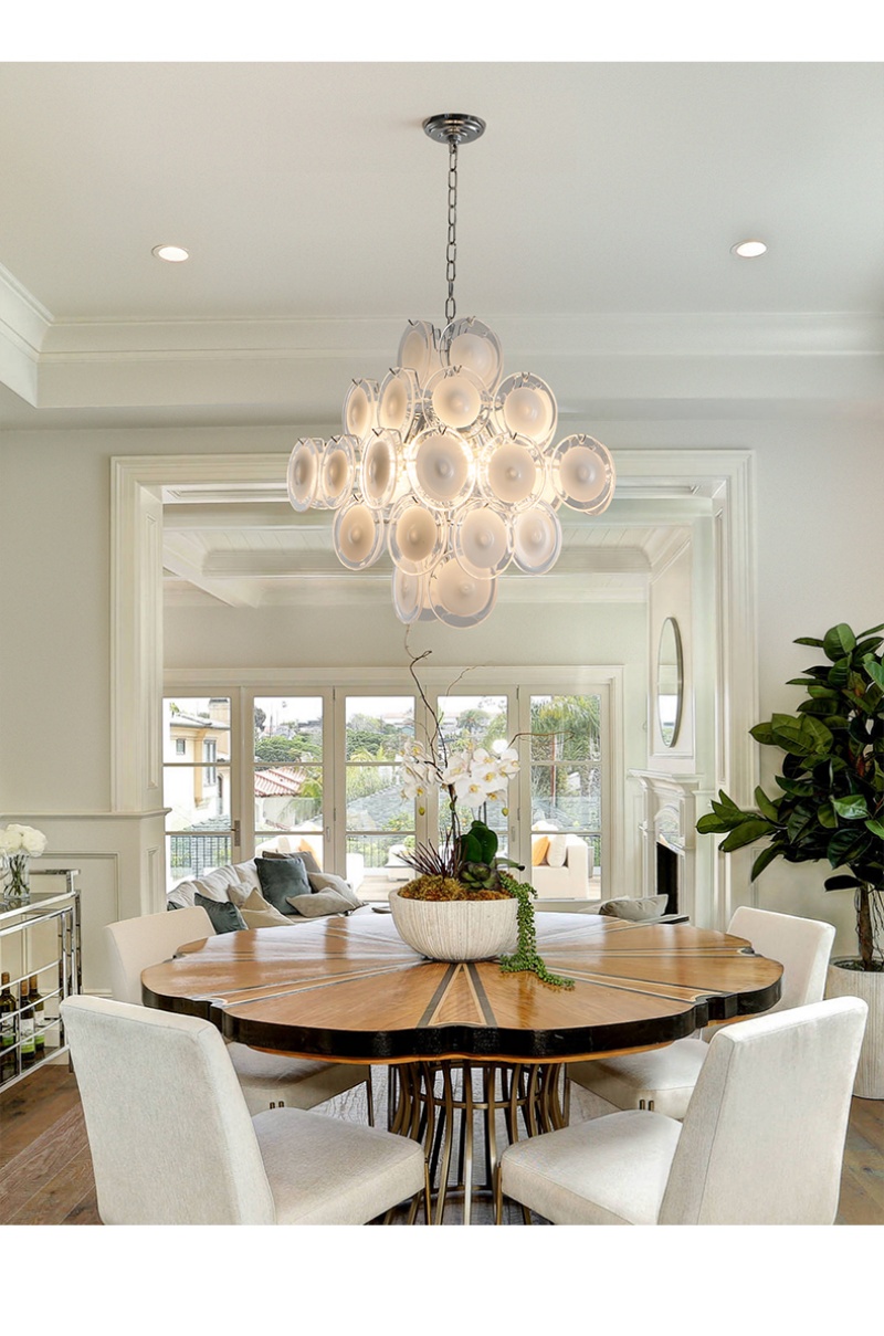 - Crisp White Material Palette: Crafted from high-quality white glass and sturdy iron, this pendant light offers a clean and timeless aesthetic. The white glass softly diffuses light to minimize glare, while the robust iron structure ensures long-lasting durability. This pendant lamp is built to provide reliable performance while maintaining its elegant appearance for years.
