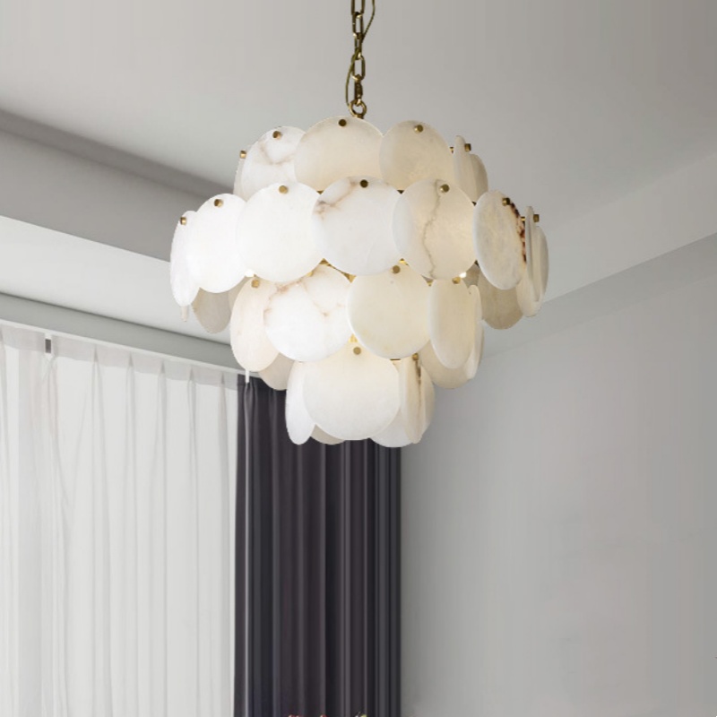 - Premium Material Harmony: Expertly crafted from genuine copper and natural alabaster marble, this pendant lamp represents the perfect marriage of durability and aesthetic appeal. The warm copper framework beautifully contrasts with the pure white alabaster shades, creating a timeless piece that complements various interior styles. Each marble component in this pendant lamp features unique natural veining, ensuring your lighting fixture becomes a distinctive work of art while maintaining structural integrity across all 9 to 30 lighting points.