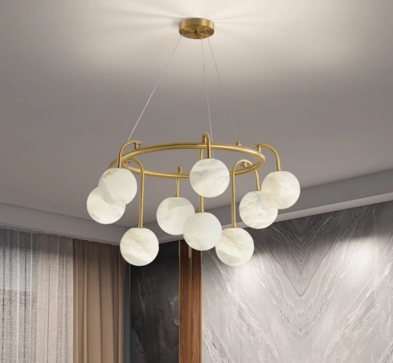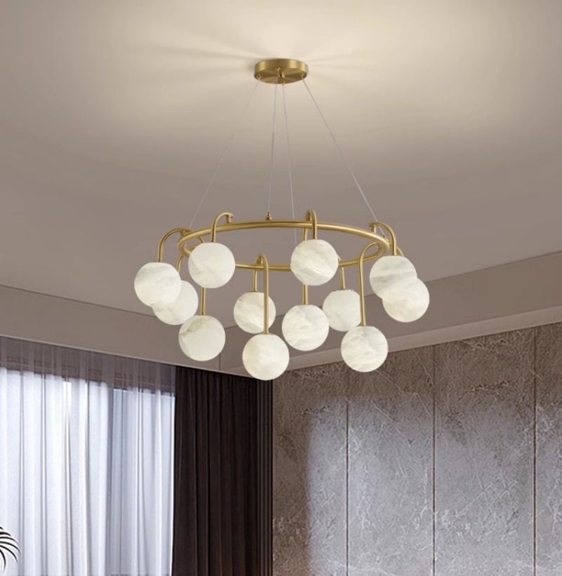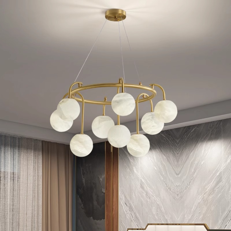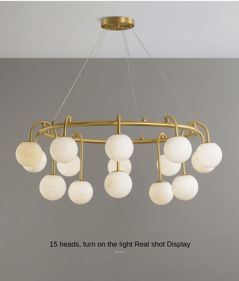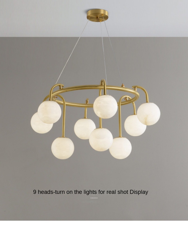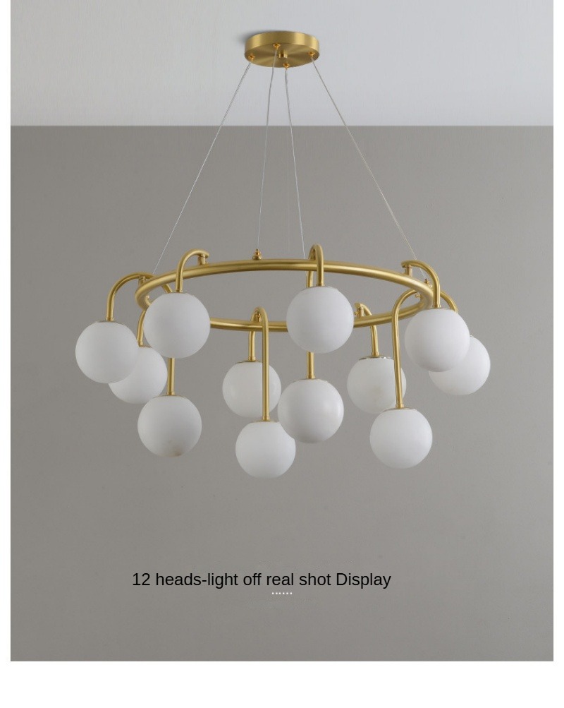 - Elegant Modern Design: This 8-12 Heads Ball Marble Copper Pendant Light showcases a sleek, minimalist aesthetic that effortlessly elevates any space with its contemporary appeal. The pendant light features multiple spherical heads arranged in a balanced configuration, creating a striking visual centerpiece that blends artistry and functionality. Designed for versatility, this pendant light adapts seamlessly to various settings, from living rooms to hotel lobbies, offering a customizable lighting experience. The modern simple style ensures that this pendant light not only illuminates but also enhances the overall decor, making it a perfect choice for those seeking a sophisticated yet understated pendant lamp solution. With its adjustable heads, this pendant light allows for directed lighting, adding both practicality and elegance to your environment.