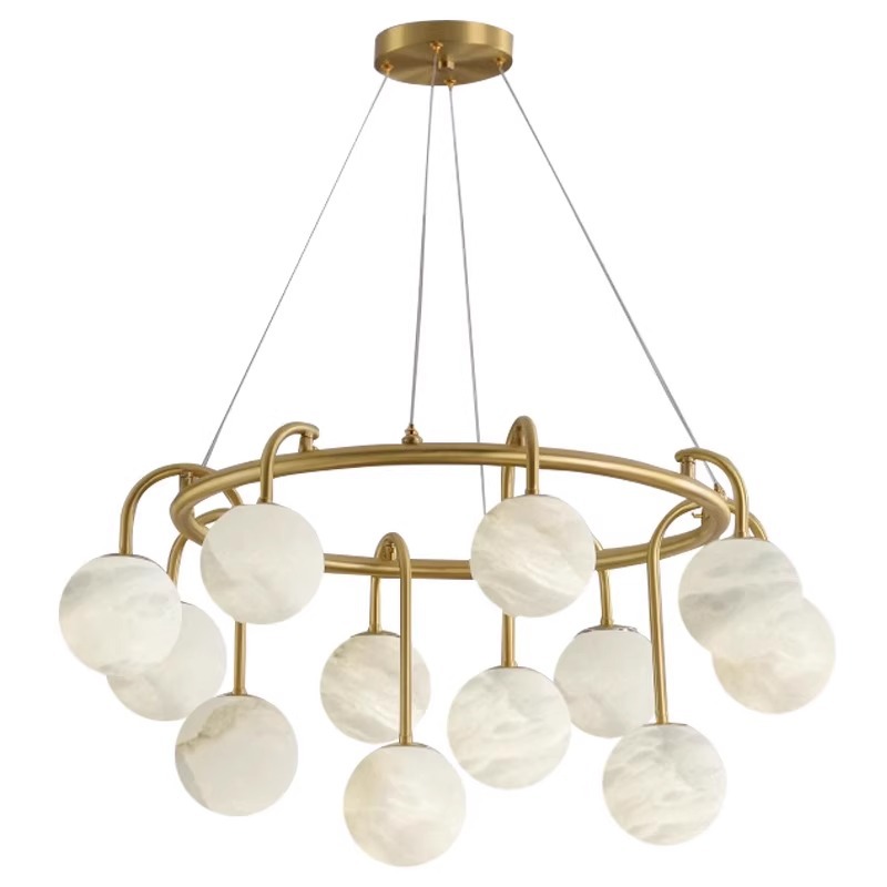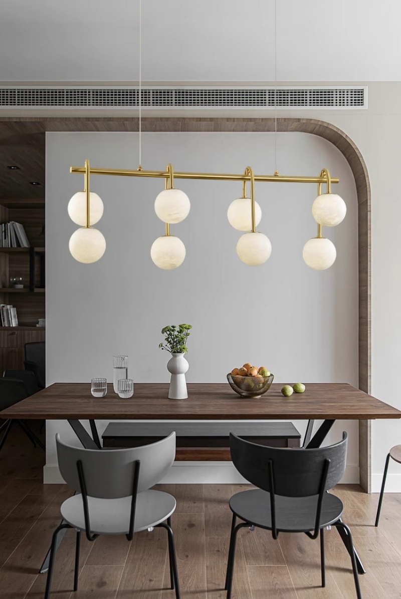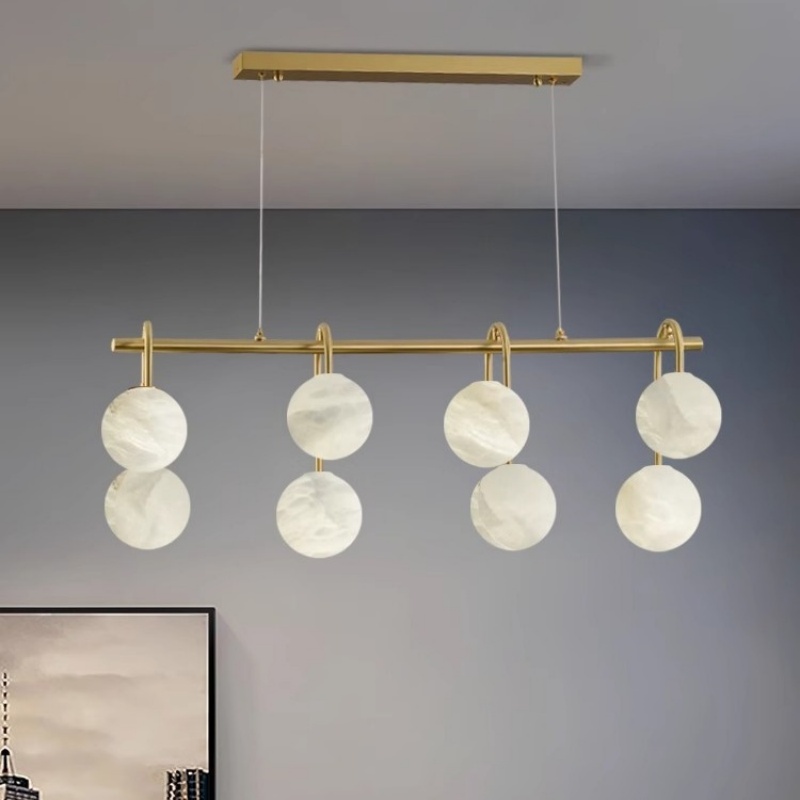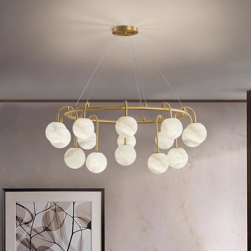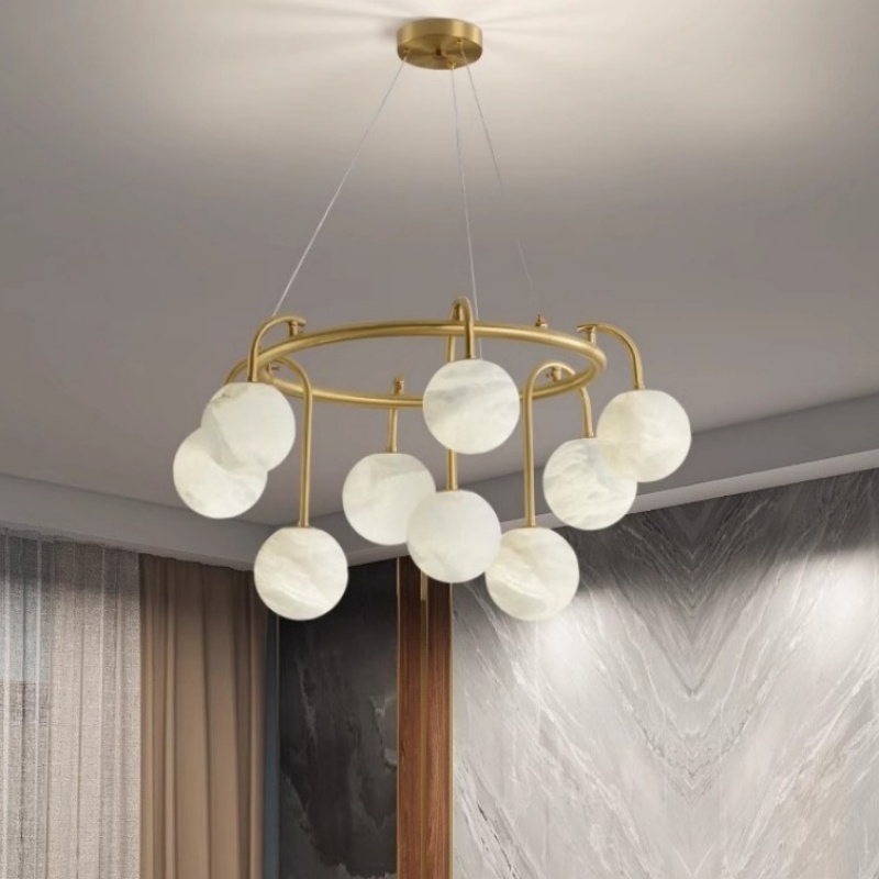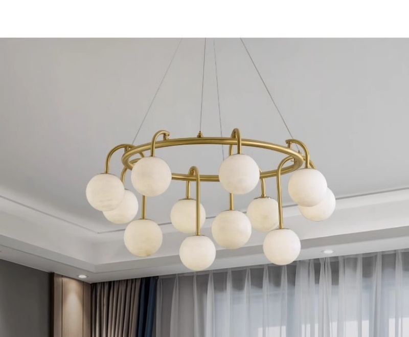 - Elegant Modern Design: This 8-12 Heads Ball Marble Copper Pendant Light showcases a sleek, minimalist aesthetic that effortlessly elevates any space with its contemporary appeal. The pendant light features multiple spherical heads arranged in a balanced configuration, creating a striking visual centerpiece that blends artistry and functionality. Designed for versatility, this pendant light adapts seamlessly to various settings, from living rooms to hotel lobbies, offering a customizable lighting experience. The modern simple style ensures that this pendant light not only illuminates but also enhances the overall decor, making it a perfect choice for those seeking a sophisticated yet understated pendant lamp solution. With its adjustable heads, this pendant light allows for directed lighting, adding both practicality and elegance to your environment.