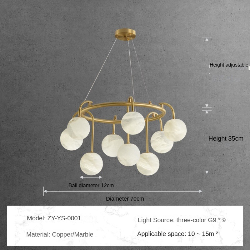 - Luxurious Material and Color: Crafted from high-quality copper and marble, this pendant lamp exudes a sense of luxury and durability that appeals to discerning homeowners. The copper finish provides a warm, rich tone that complements the natural veining of the marble spheres, giving this pendant light a unique, handcrafted appearance. Available in a distinctive copper color, the pendant light adds a touch of timeless elegance to interiors, while the marble elements ensure each piece is one-of-a-kind. This combination of materials not only makes the pendant light visually stunning but also resistant to wear, ensuring that your pendant light remains a focal point for years. The harmonious blend of copper and marble in this pendant light creates a sophisticated ambiance that enhances both modern and classic decors.