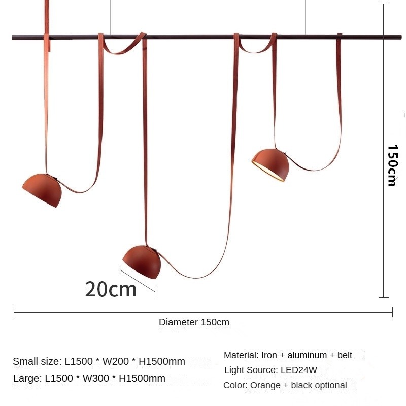 - Industrial Chic Dual-Tone Design: The Pendant Lamp makes a bold style statement with its striking contrast of vibrant orange and sleek black finishes, creating a dramatic visual impact in any space. This exceptional pendant lamp combines genuine leather belt accents with glass elements and metal framework, offering a perfect blend of industrial ruggedness and modern sophistication. Available in two sophisticated sizes (1500*200*1000mm and 1500*300*1000mm), this dual-tone pendant lamp serves as an eye-catching centerpiece for both residential and commercial environments seeking that perfect mix of industrial charm and contemporary elegance.
