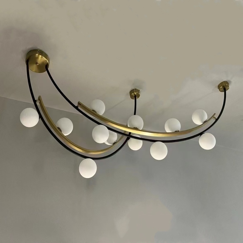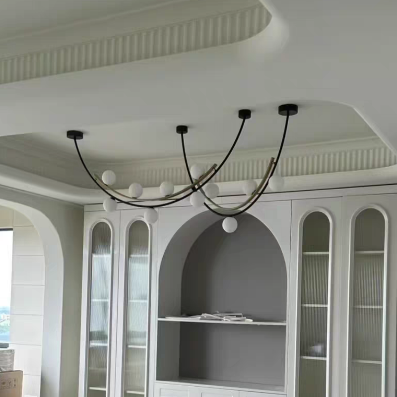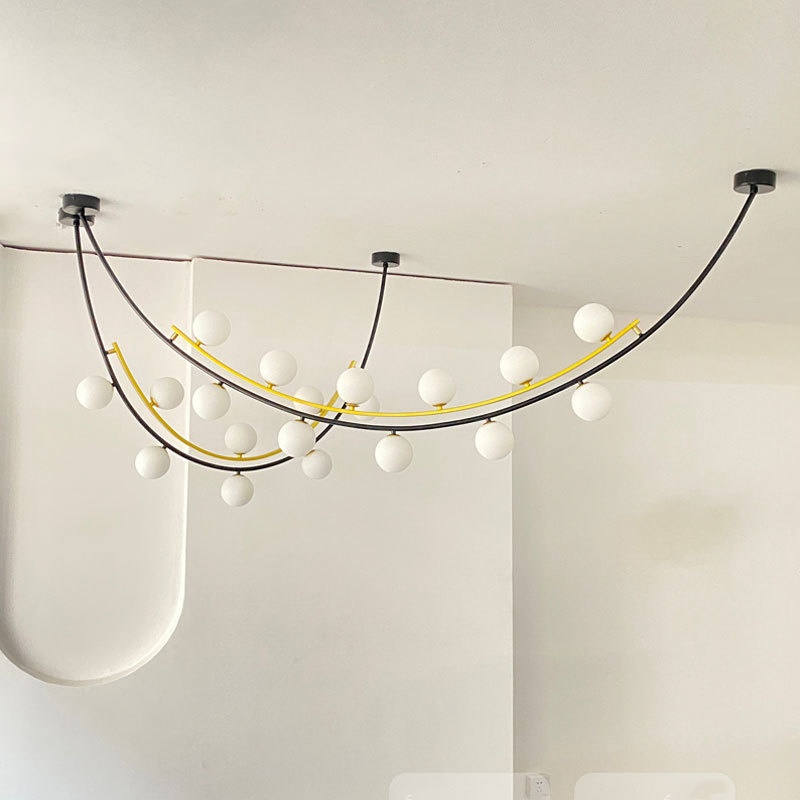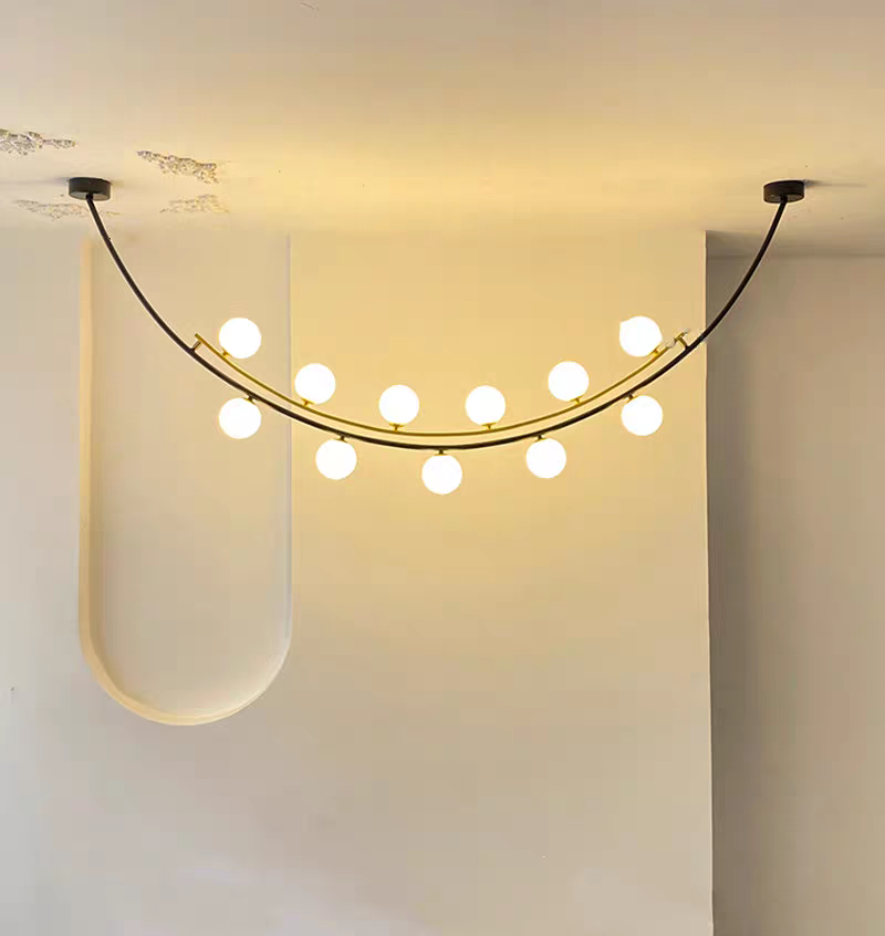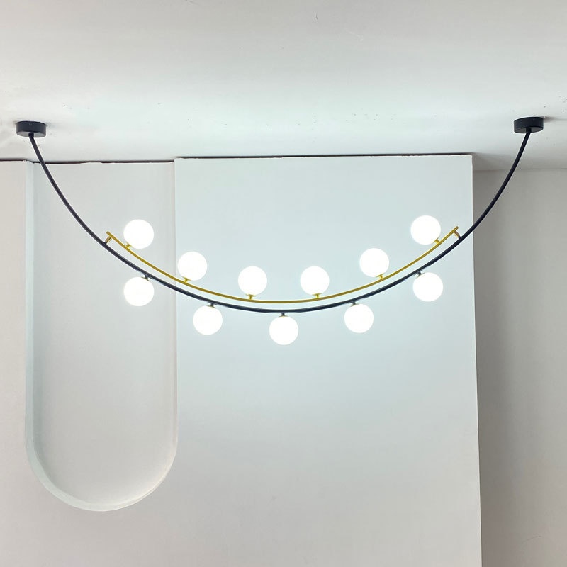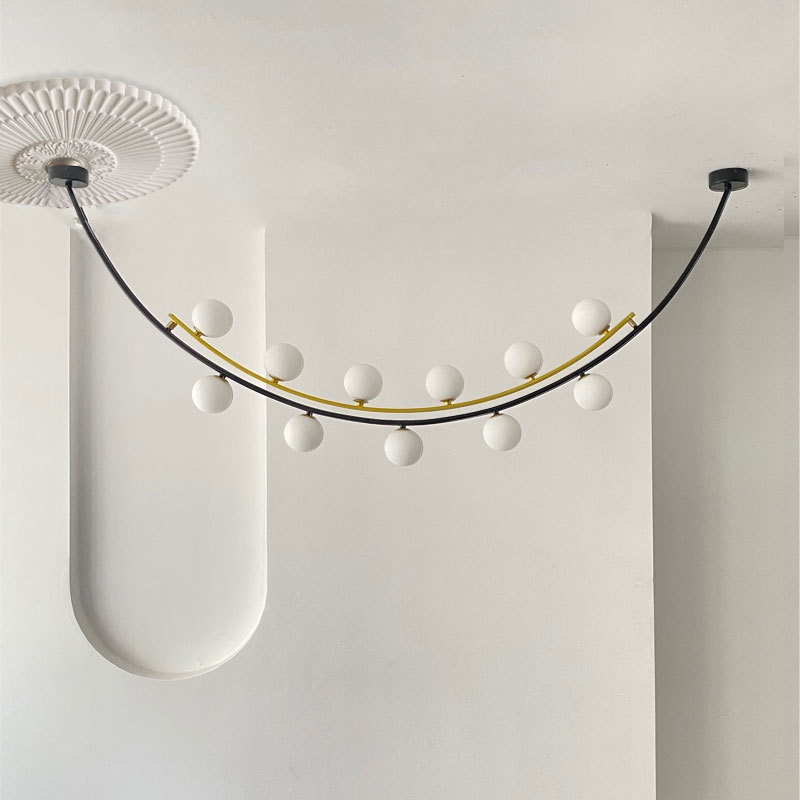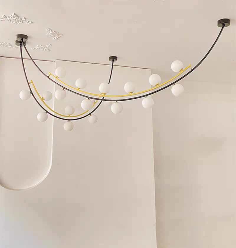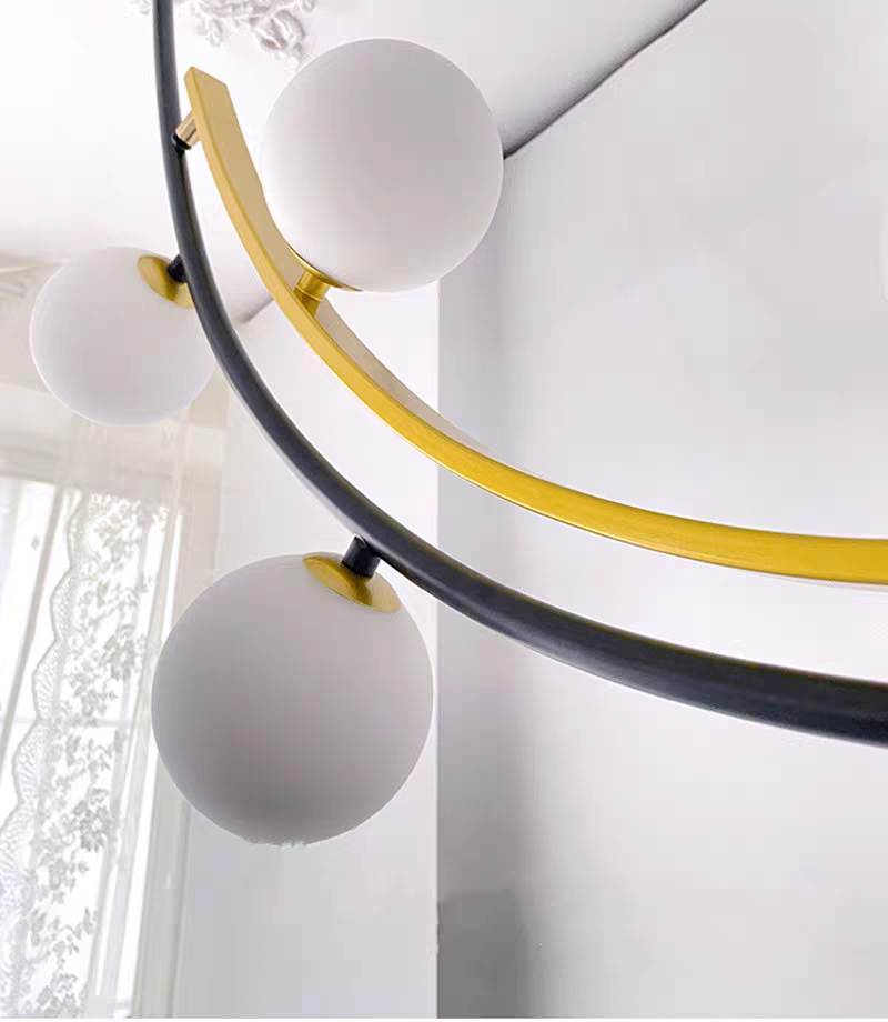 - Artistic Multi-Sphere Illumination: The Pendant Lamp redefines modern lighting with its exquisite multi-sphere design that creates mesmerizing visual dynamics through contrasting black and gold finishes. This architectural pendant lamp features multiple handcrafted glass spheres suspended at varying heights from a precision iron framework, creating an eye-catching floating effect that transforms any space into a sophisticated gallery-like setting. Available in five meticulously engineered size combinations, this statement-making pendant lamp offers endless possibilities for creating custom lighting arrangements that become instant conversation pieces in both residential and commercial environments.