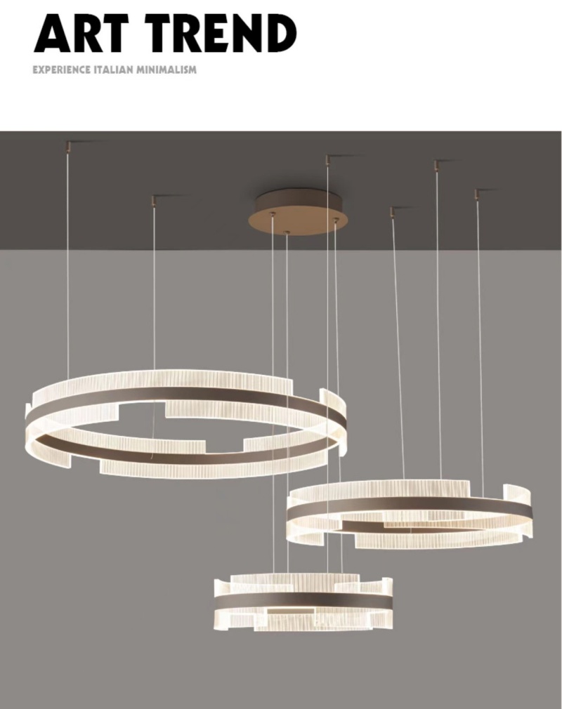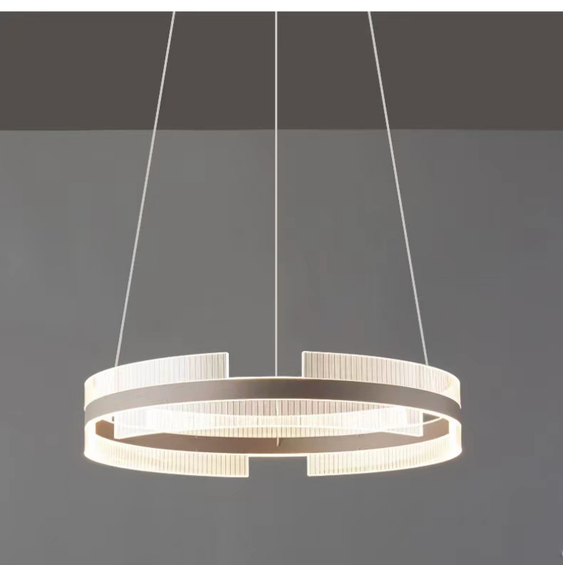 - Sophisticated Transparent Design: Featuring a sophisticated combination of black spray-painted aluminum framework and transparent acrylic rings, this pendant lamp achieves a perfect balance between bold presence and visual lightness. The high-quality materials ensure this durable pendant lamp maintains its elegant appearance while allowing light to pass through the transparent elements beautifully, creating a mesmerizing lighting effect that enhances the modern character of any space it illuminates.