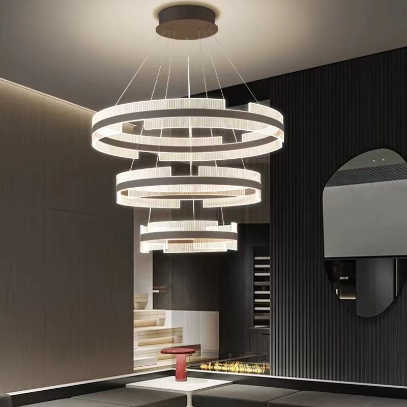 - Floating Ring Illumination: The Black Transparent Ring Acrylic Pendant Lamp creates a captivating visual effect where the illuminated acrylic rings appear to float gracefully in space, generating beautiful layered lighting that adds depth and dimension to any room. This innovative pendant lamp transforms ordinary ceilings into artistic displays, making it perfect for creating stunning visual interest in modern living rooms, hotel lobbies, and staircase areas where both illumination and aesthetic appeal are equally important.