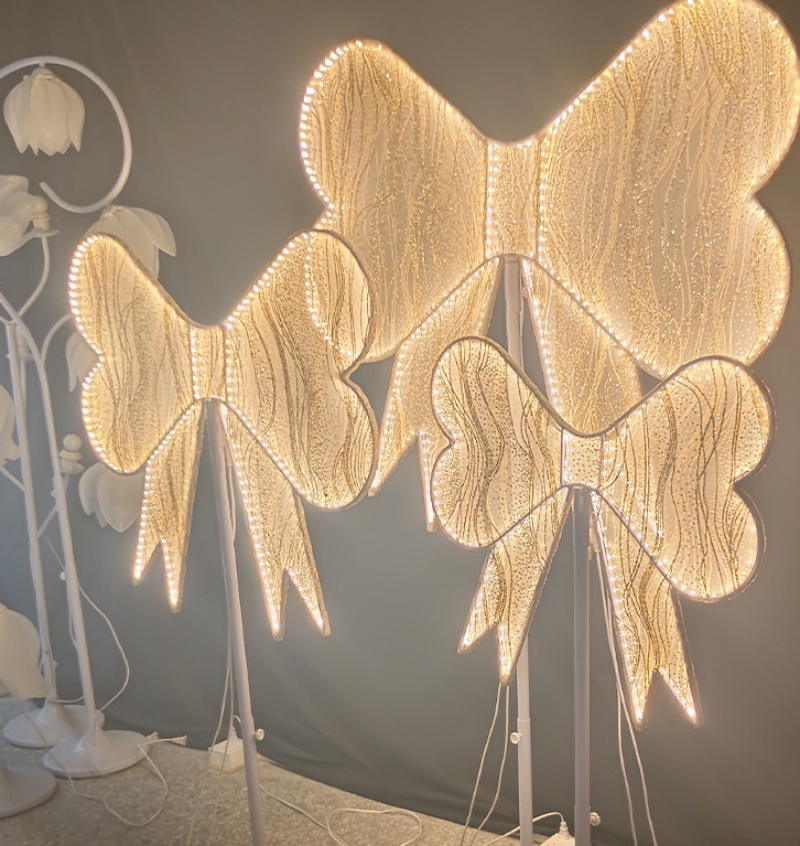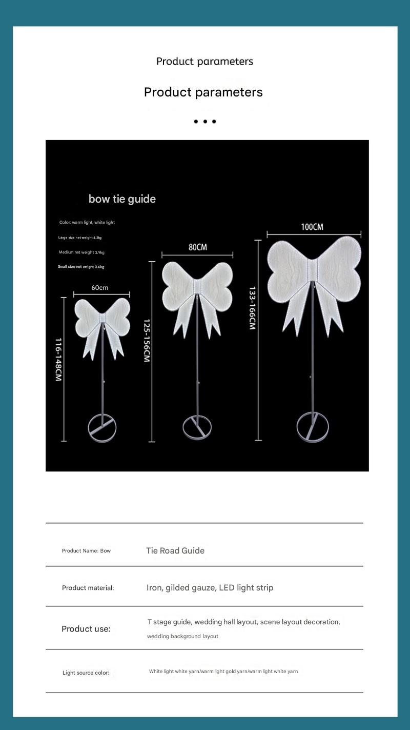 • Design & Atmosphere: This Bow Wedding LED Floor Light is designed to be both highly practical and visually charming. It emits a warm and soft glow that creates an inviting and romantic atmosphere, making it perfect for wedding venues, anniversary celebrations, or simply enhancing the comfort of your living space. The elegant bow-shaped detailing adds a touch of timeless beauty, ensuring that this floor light serves not only as a source of illumination but also as a decorative statement piece in any setting.