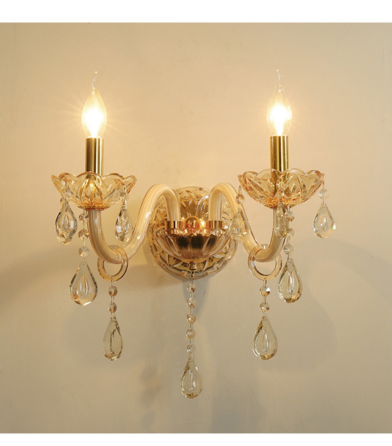 - Effervescent Elegance for Modern Walls: This Champagne Glass Crystal Wall Lamp introduces a touch of understated luxury and warm radiance to any interior. Offered in versatile two, three, or five-head configurations, this modular wall lamp creates a beautifully balanced composition of light, perfect for making a statement in a grand staircase or providing elegant ambient lighting in a hotel lobby lounge. Its sophisticated design blends clean lines with sparkling details, making this stunning wall lamp a versatile centerpiece that complements the refined aesthetic of Modern Simple decor in homes, villas, and commercial spaces.