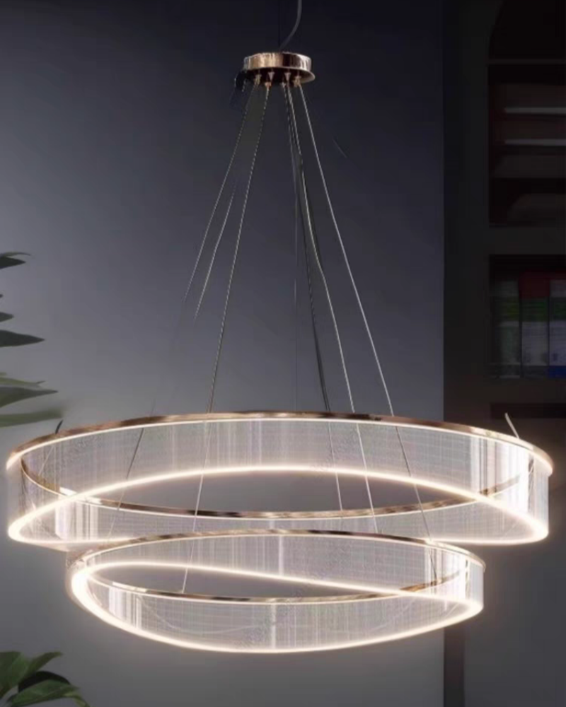 - Premium Transparent Construction: Crafted from high-quality transparent acrylic and complemented by a warm gold-plated aluminum framework, this pendant light achieves a perfect balance between visual lightness and structural presence. The premium materials ensure this durable pendant light maintains its elegant appearance while allowing light to pass through the transparent elements beautifully, creating a soft, diffused glow that enhances the modern character of any space. The gold metallic accents add a touch of luxury to this already stunning pendant light, making it both a functional lighting solution and a decorative centerpiece.