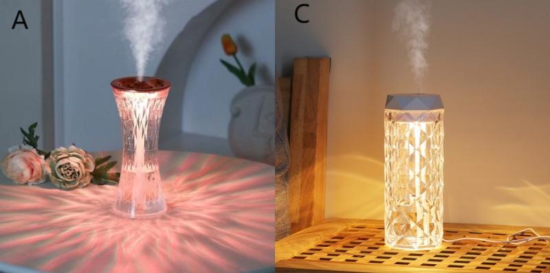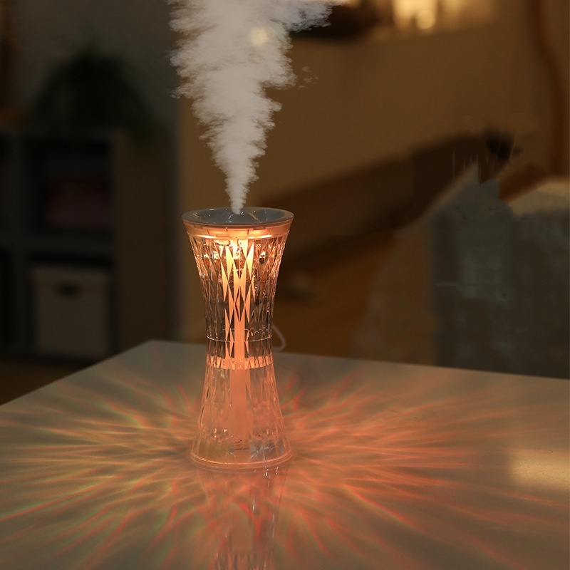 - Unique and Elegant Design: The Crystal USB Air Humidifier Table Lamp combines beauty and function in a modern design. Featuring a crystal-like, faceted texture, this lamp creates a stunning visual effect while also serving as an air humidifier. The smooth PS and ABS materials offer a high-end appearance, and the LED light softly illuminates any room, making it an ideal addition to any living room, dining room, restaurant, or tea room.
