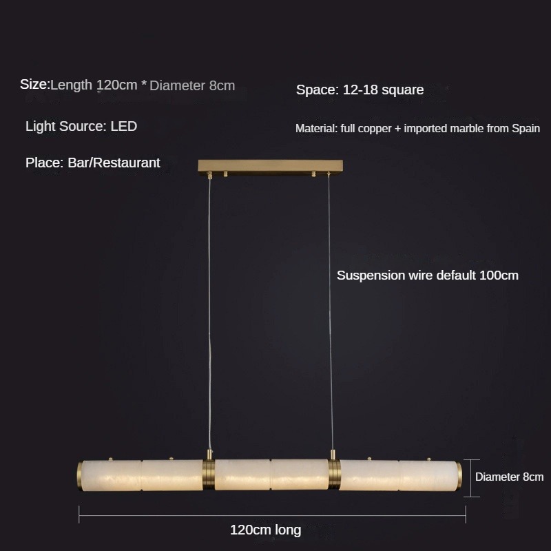 - A Sophisticated Material Contrast: Expertly crafted, this pendant light showcases a beautiful harmony between natural white alabaster and warm golden copper. The long cylindrical shade, made from solid alabaster, provides a soft, diffused glow, while the sleek copper hardware adds a touch of refined industrial charm. This pendant light is a testament to luxurious materiality, designed to become an instant focal point that elevates the aesthetic of living rooms, villas, and commercial spaces alike.