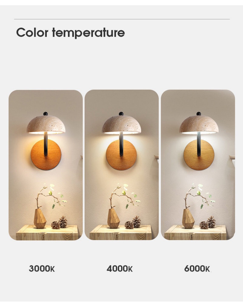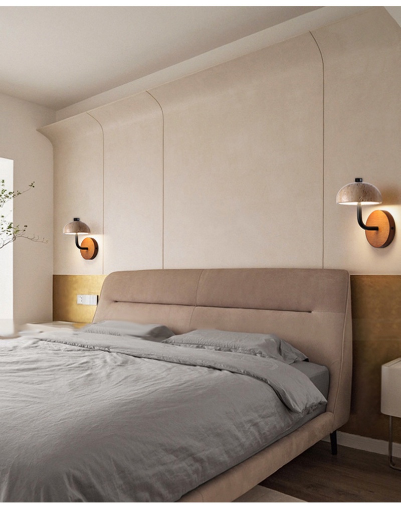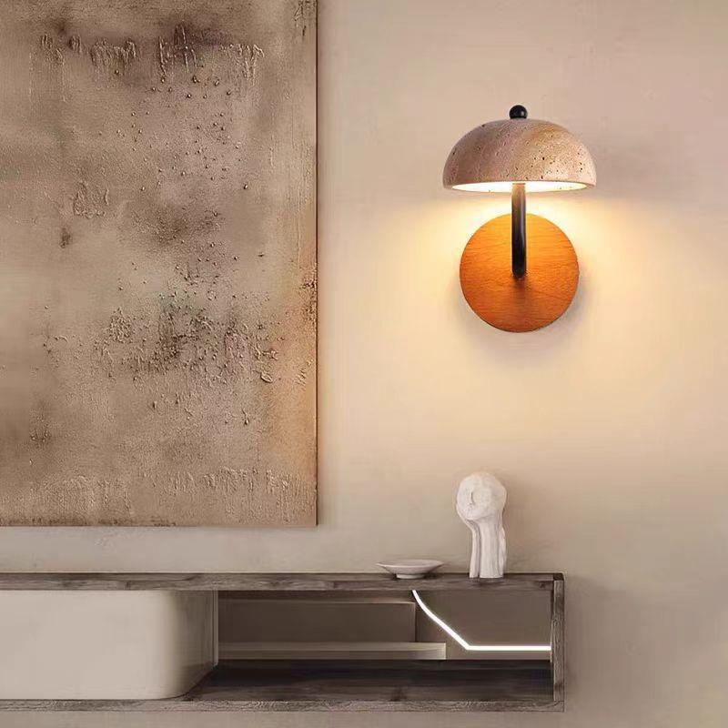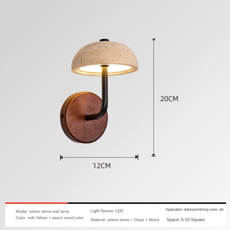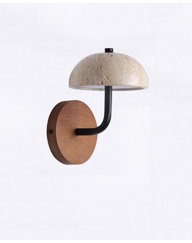 - Elegant Umbrella Stone Design with Natural Materials: This D12cm umbrella stone wall lamp features a distinctive architectural form inspired by classic umbrella silhouettes, crafted from genuine yellow travertine and warm wood accents. The wall lamp showcases nature’s artistry through unique stone veining patterns that ensure each piece is one-of-a-kind, bringing organic sophistication to any interior space. Its compact yet impactful design makes this wall lamp perfect for adding both functional illumination and decorative appeal to modern living environments, hotel spaces, and luxury residences.