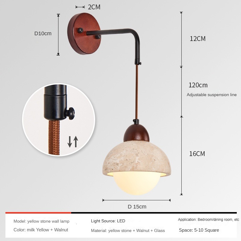 - Elegant Spherical Design with Natural Materials: This D15cm natural stone ball wall light showcases exquisite craftsmanship through its perfect spherical form crafted from genuine yellow travertine and warm wood accents. The wall light features unique natural veining patterns that ensure each piece is distinctly elegant, creating a harmonious blend of organic materials and modern design. Measuring D150*H160MM with custom sizing available, this wall light offers versatile design options to complement various architectural styles while maintaining its luxurious appeal as a sophisticated lighting solution for both residential and commercial spaces.