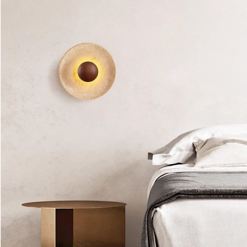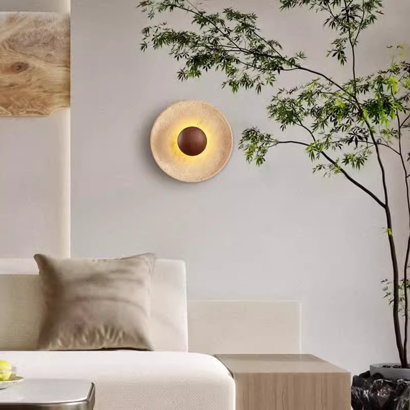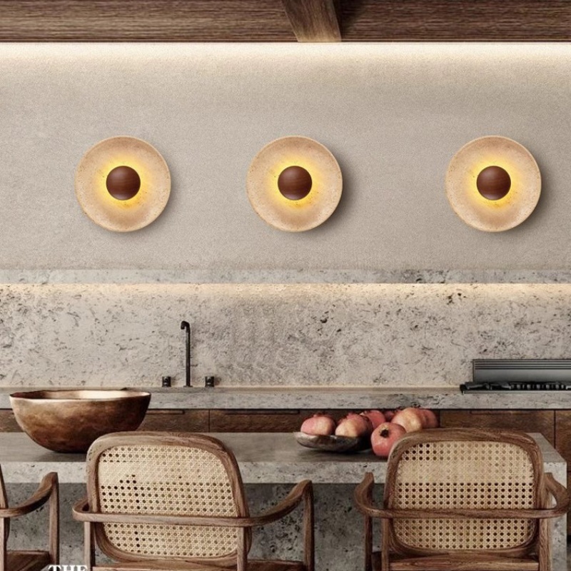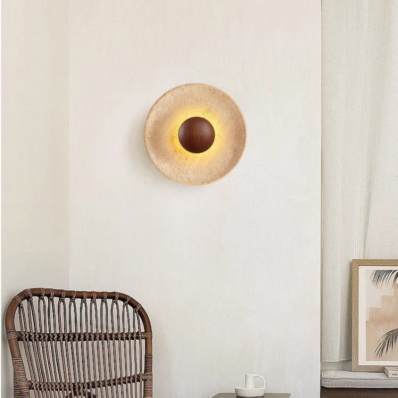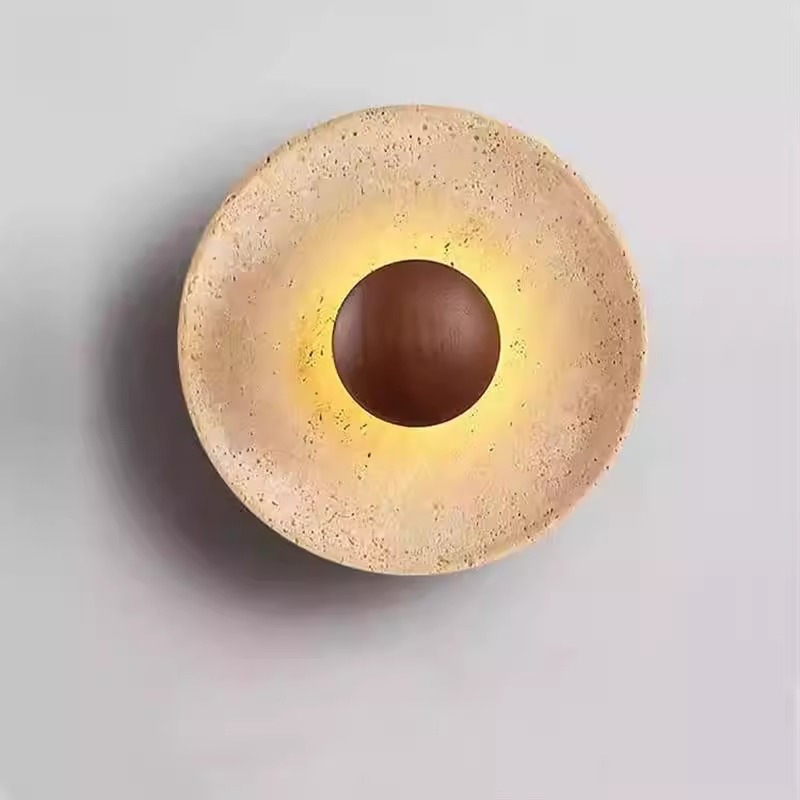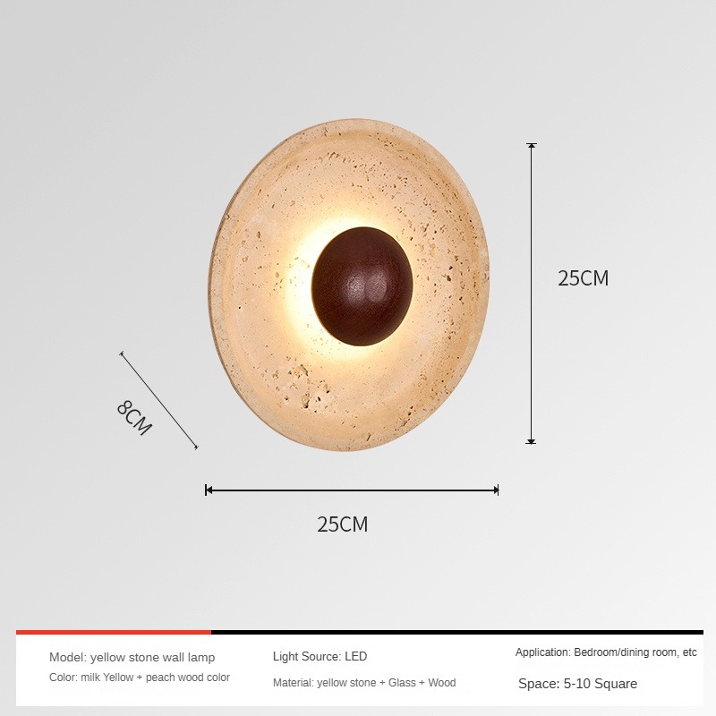 • Elegant Natural Stone Design with Wood Accents: This D25cm natural stone wall light showcases exquisite craftsmanship through its combination of genuine yellow travertine and warm wood finishes, creating a harmonious blend of natural elements. The wall light features unique veining patterns that ensure each piece is one-of-a-kind, bringing organic elegance and sophisticated charm to any space. Its substantial presence makes this wall light a stunning focal point that complements both modern and traditional interiors with equal grace.