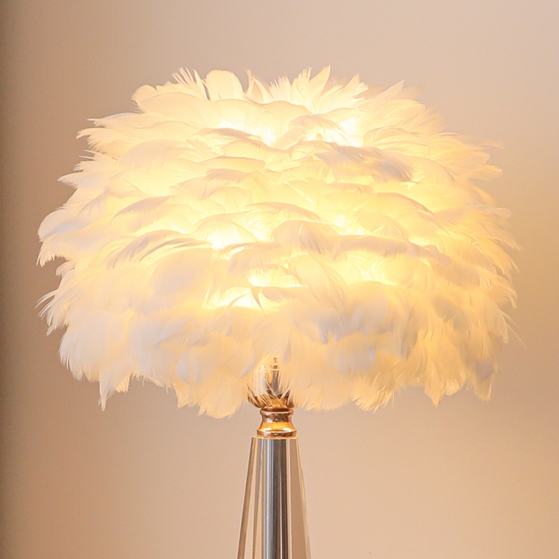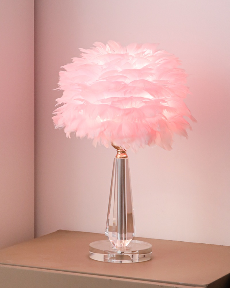 • Elegant Crystal Base: The table light boasts a premium crystal base, providing a sophisticated contrast to the delicate feathers above. The crystal’s clear, polished finish adds a touch of luxury, while the sleek design ensures the lamp fits seamlessly into any contemporary setting. This table light is an excellent choice for those who appreciate both form and function in their home decor.