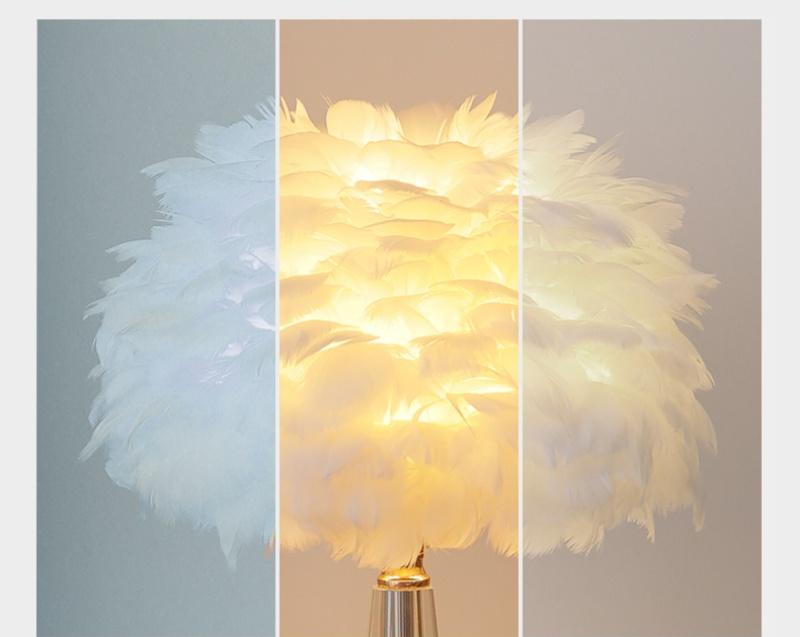 • Luxurious Feather Design: This stunning table light features a beautifully crafted shade made of soft, fluffy feathers, designed to add elegance and charm to any space. The gentle glow it emits creates a cozy atmosphere, perfect for enhancing your living room, bedroom, or dining area. The feathered shade diffuses the light beautifully, creating a warm, inviting ambiance ideal for any modern home.