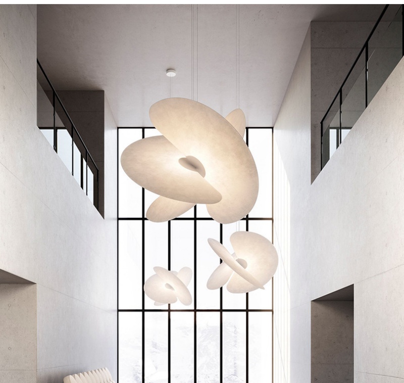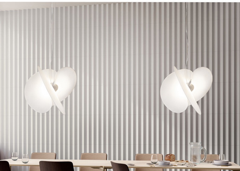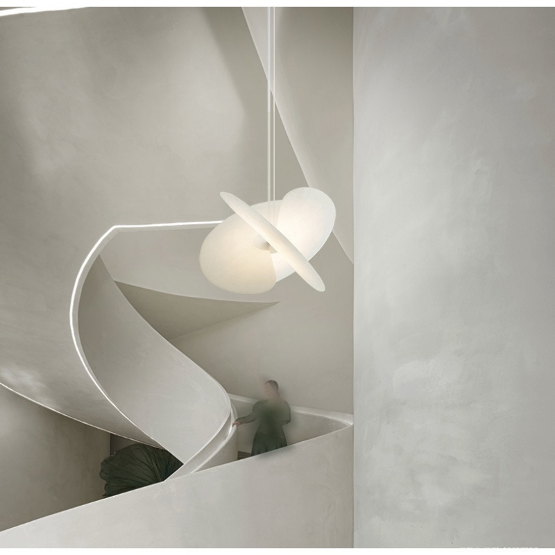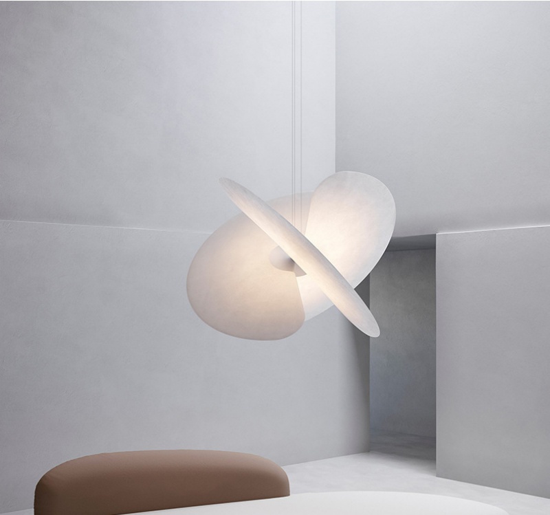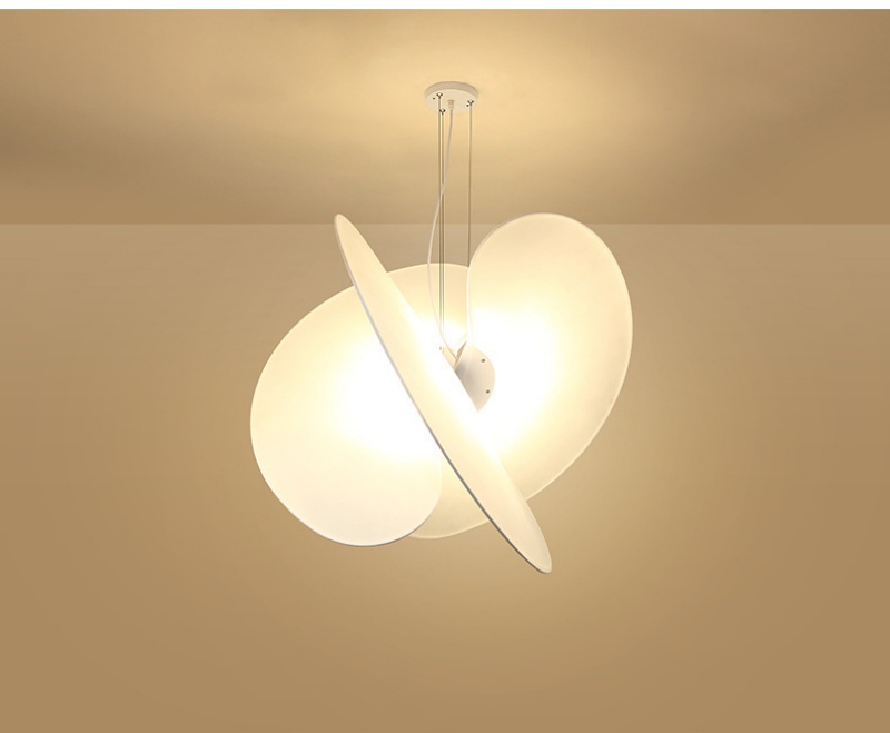 - Minimalist Design: This pendant lamp uses two intersecting discs to create a sculptural, planet-like profile that diffuses a soft glow; the pendant lamp complements Modern Simple, Classic, and Nordic décor in living rooms, bedrooms, study rooms, teahouses, high-end villas, clubs, and bars.