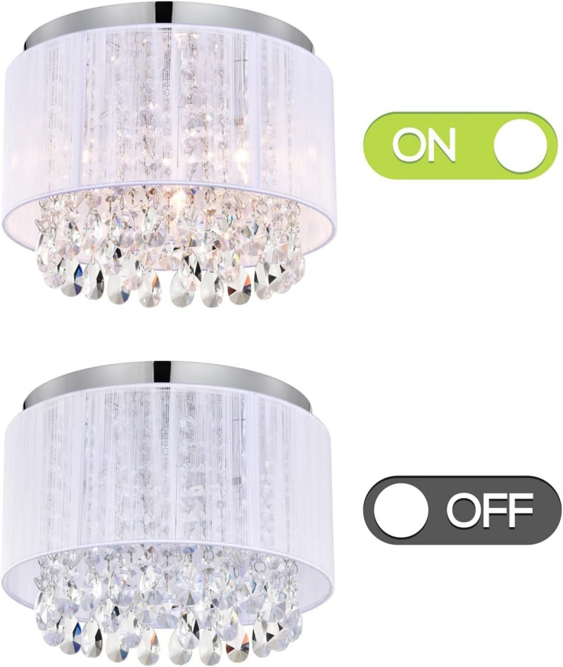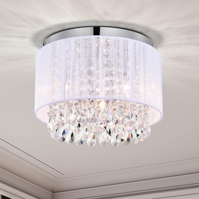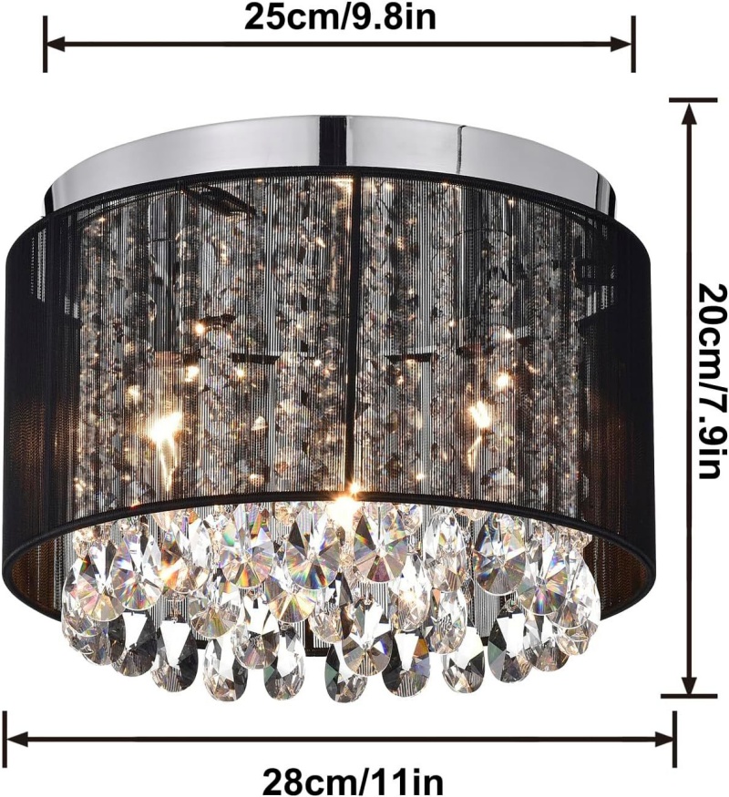 • Elegant Crystal Design: The E14 Crystal Round Ceiling Lamp features a stunning circular design adorned with premium crystal elements that create brilliant light reflections. This ceiling lamp combines modern simplicity with luxurious accents, making it perfect for enhancing bedrooms, dining rooms, and living areas. The carefully arranged crystals and cloth shade work together to produce a soft, inviting glow that transforms any space into an elegant setting. With its multifunctional style, this ceiling lamp serves as both a practical light source and a decorative centerpiece.