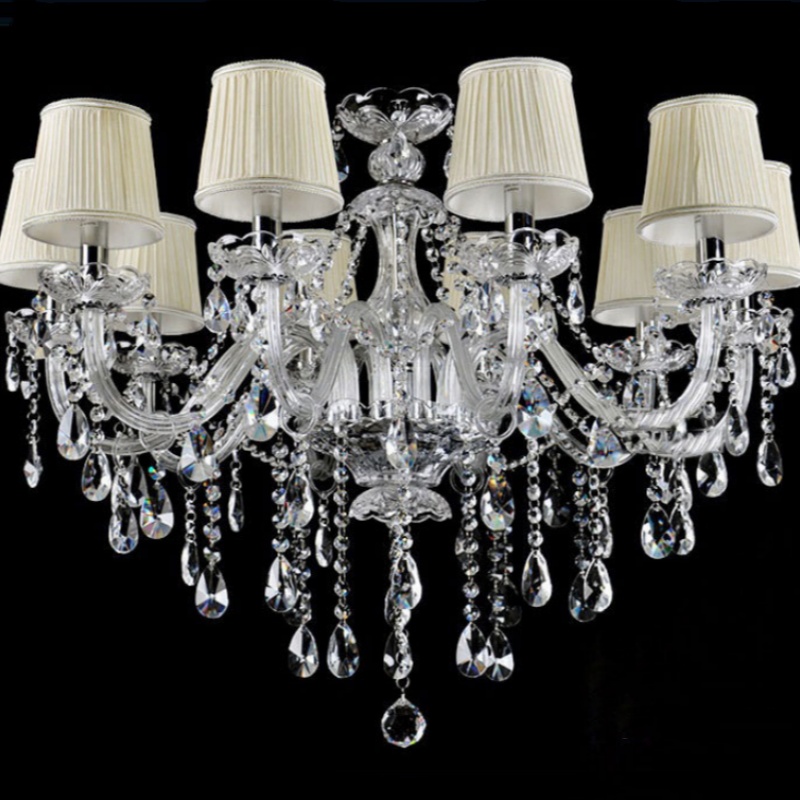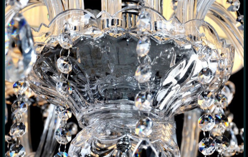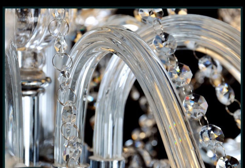 - Timeless Transparency in Craftsmanship: The stunning visual appeal of this chandelier is achieved through a masterful blend of materials. A sturdy iron frame provides the classic structure, adorned with an array of perfectly clear glass candle sleeves and shimmering, faceted crystals. The overall transparent aesthetic allows light to flow uninterrupted, creating a dazzling display of brilliance and clarity. This exquisite chandelier is a testament to traditional craftsmanship, where the purity of glass and the sparkle of crystal combine to add a layer of luxurious texture and luminous depth to any room.