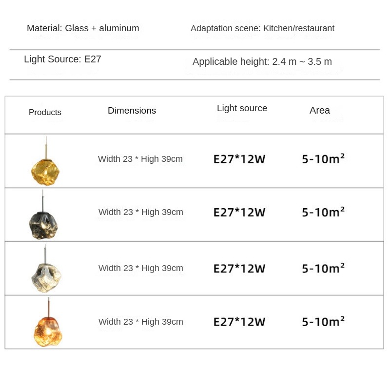 - Simple Switch Control Operation: Designed for user-friendly operation, this pendant lamp features straightforward switch control for easy lighting management. The E27/E26 Aluminum Glass Pendant Lamp accommodates standard E27 LED bulbs and offers worldwide voltage compatibility (90V-260V), ensuring seamless installation and reliable performance in any residential or commercial environment, regardless of your chosen color variant.