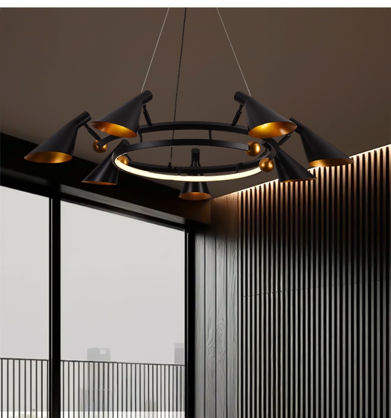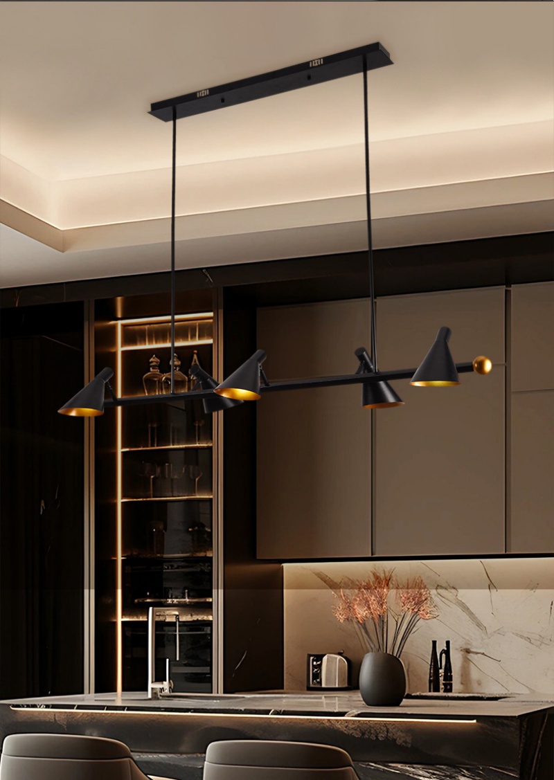 • Durable Metallic Construction: The pendant lamp combines robust matte black aluminum and iron elements, creating an industrial-chic aesthetic that offers both structural integrity and modern elegance. This durable material combination ensures your pendant lamp maintains excellent stability while providing focused illumination through its strategic lighting arrangement, making it suitable for various commercial and residential applications.