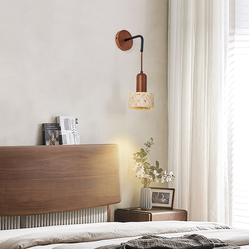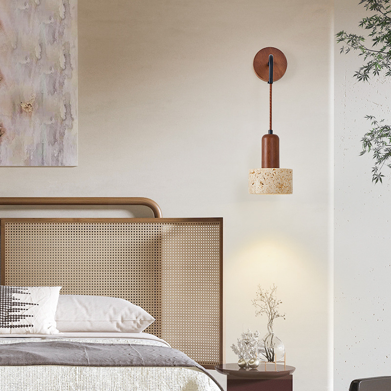 E27/E26 Yellow Travertine Wood Wall Lamp