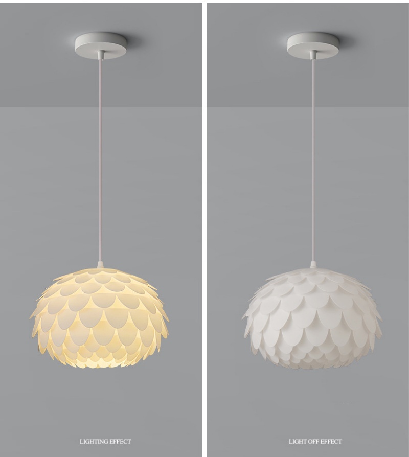 - Artistic Fish Scale Design Inspiration: This stunning Fish Scale Acrylic Pendant Light features intricately arranged acrylic panels that beautifully mimic the organic pattern of fish scales, creating a captivating visual effect that brings natural elegance to any interior space. The unique design of this pendant light adds a touch of underwater wonder to modern, classic, and Nordic interiors, making it perfect for enhancing living rooms, bedrooms, tea houses, and high-end commercial establishments where lighting serves as both functional illumination and artistic centerpiece.