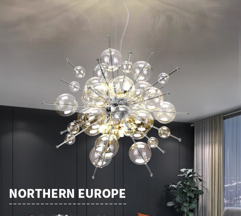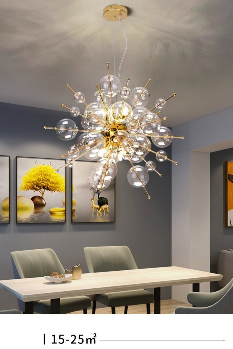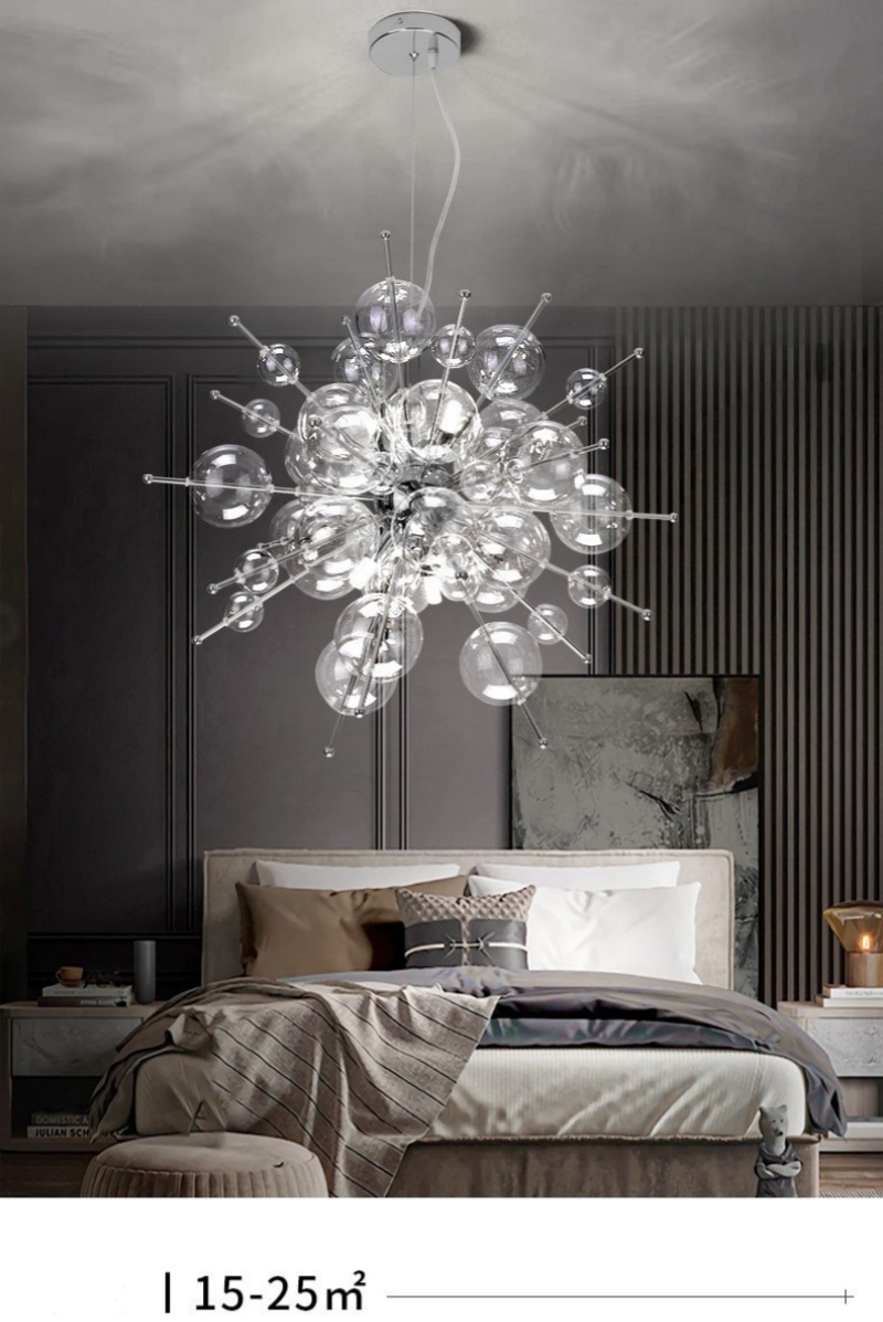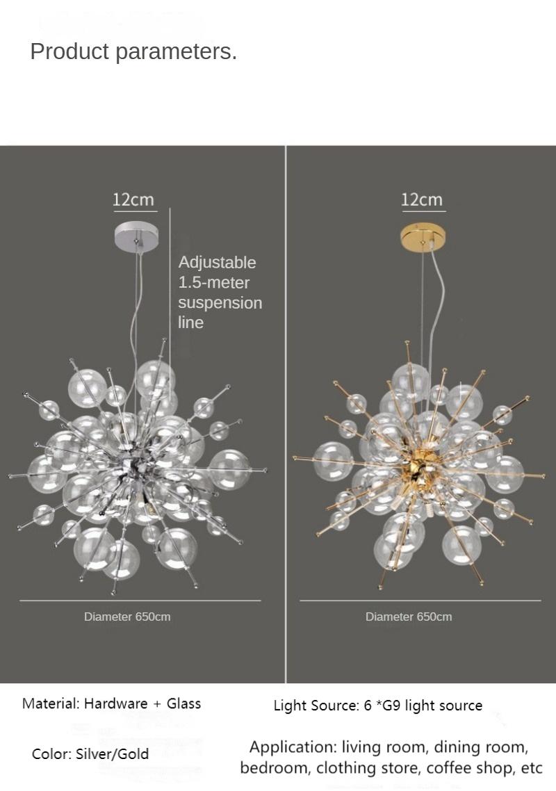 • Sleek Spherical Design: This G9 Sliver Gold Glass Ball Pendant Light features a perfectly rounded form that brings modern elegance to any interior. The pendant light showcases a harmonious blend of simplicity and luxury with its spherical silhouette, making it a captivating focal point whether hung individually or in groups. Its minimalist design complements various decor styles from contemporary to transitional.