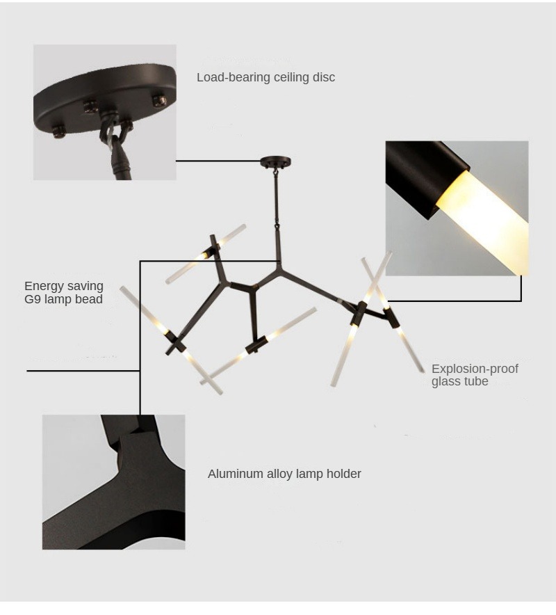 - Artistic Tree Branch Design Pendant Lamp: This G9 Tree Branch Metal Pendant Lamp features an innovative organic design that creates a stunning natural-inspired lighting statement through its unique branch-like structure. Crafted with premium aluminum, iron, and glass components, this pendant lamp delivers both artistic appeal and functional illumination, making it perfect for restaurants, bars, retail spaces, kitchen islands, and luxury residential areas seeking distinctive lighting solutions.