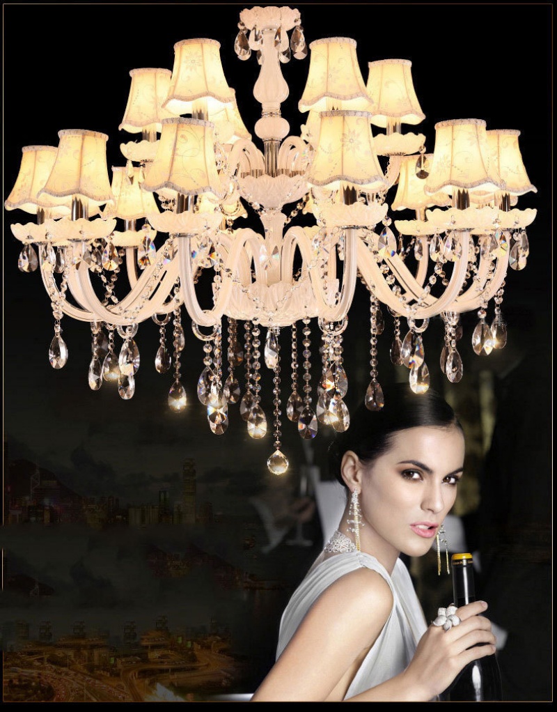 • Classic Material Harmony: This stunning chandelier is a masterpiece of traditional craftsmanship, featuring a sturdy iron frame, clear glass candle sleeves, dazzling crystal pendants, and soft fabric braiding. The combination of these rich materials creates a captivating visual texture—the strength of iron against the fragility of glass, the sparkle of crystal beside the warmth of fabric. This chandelier delivers a multi-sensory experience, making it a perfect fit for spaces seeking a touch of nostalgic luxury and artisanal detail.