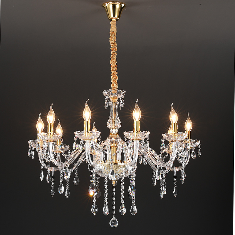 - Gilded Vintage Grandeur: This Gold Crystal Candle Chandelier radiates a sense of timeless luxury, masterfully blending classic candelabra styling with the captivating sparkle of premium crystal. This exquisite chandelier creates a warm, opulent focal point, perfect for elevating the ambiance of a formal dining room, adding a regal touch to a villa’s foyer, or infusing a boutique hotel lounge with historic charm. Its intricate design, where flickering candlelight meets crystal brilliance, makes this versatile lighting fixture a breathtaking statement piece that bridges heritage elegance and inviting warmth.