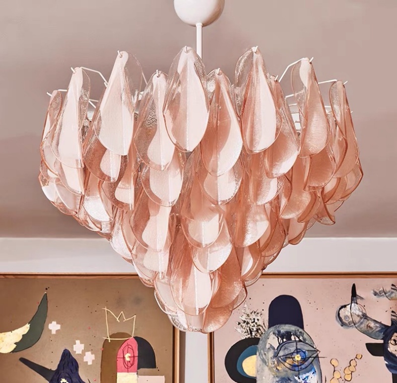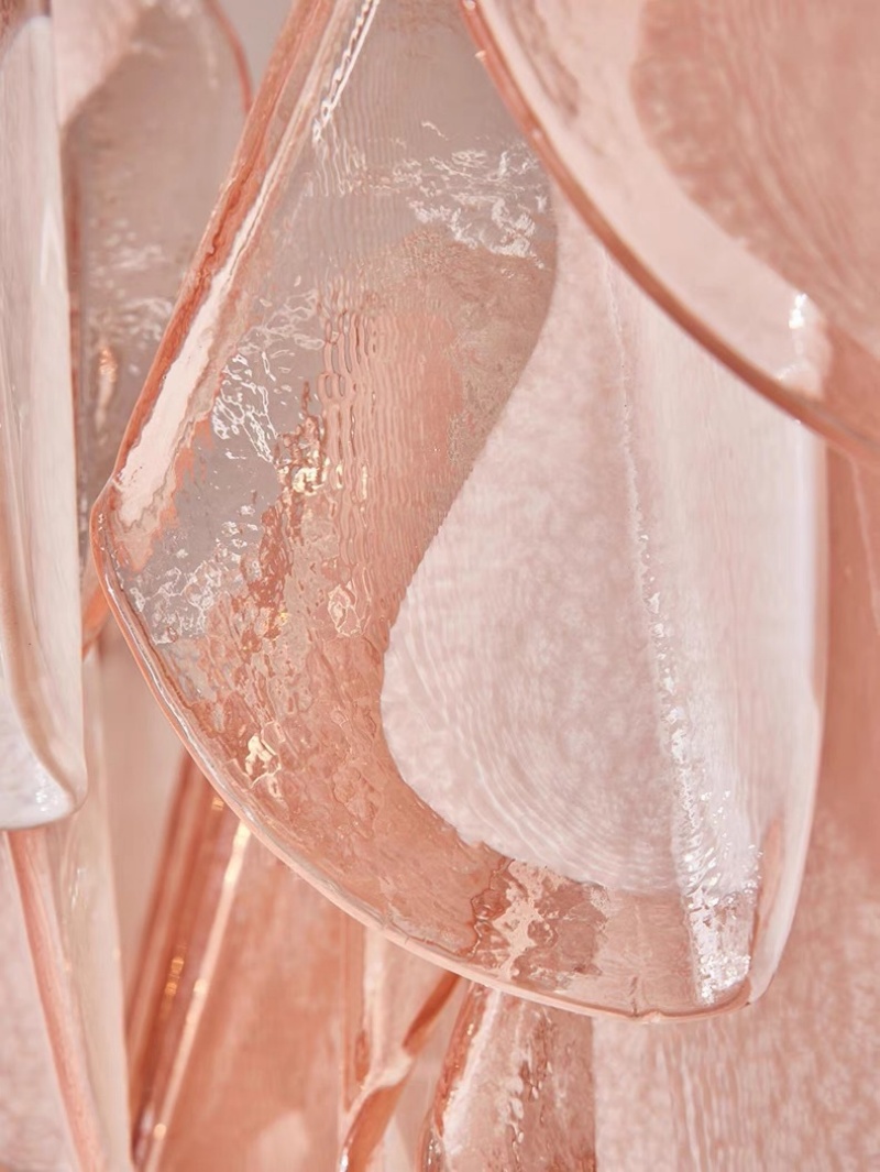- Artistic Floral Inspiration: The Green Pink Petal Glass Pendant Light draws its unique character from an elegant floral design, where each glass shade resembles a delicate petal. This creatively styled pendant light brings an organic, sculptural beauty to modern interiors, making it a captivating focal point in any living room or lobby. The flowing arrangement of the “petals” in this pendant light creates dynamic shadows and a soft, diffused glow that enhances the ambiance of your space. Choosing this pendant light means incorporating a piece of natural artistry into your home or commercial setting.