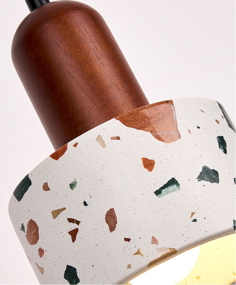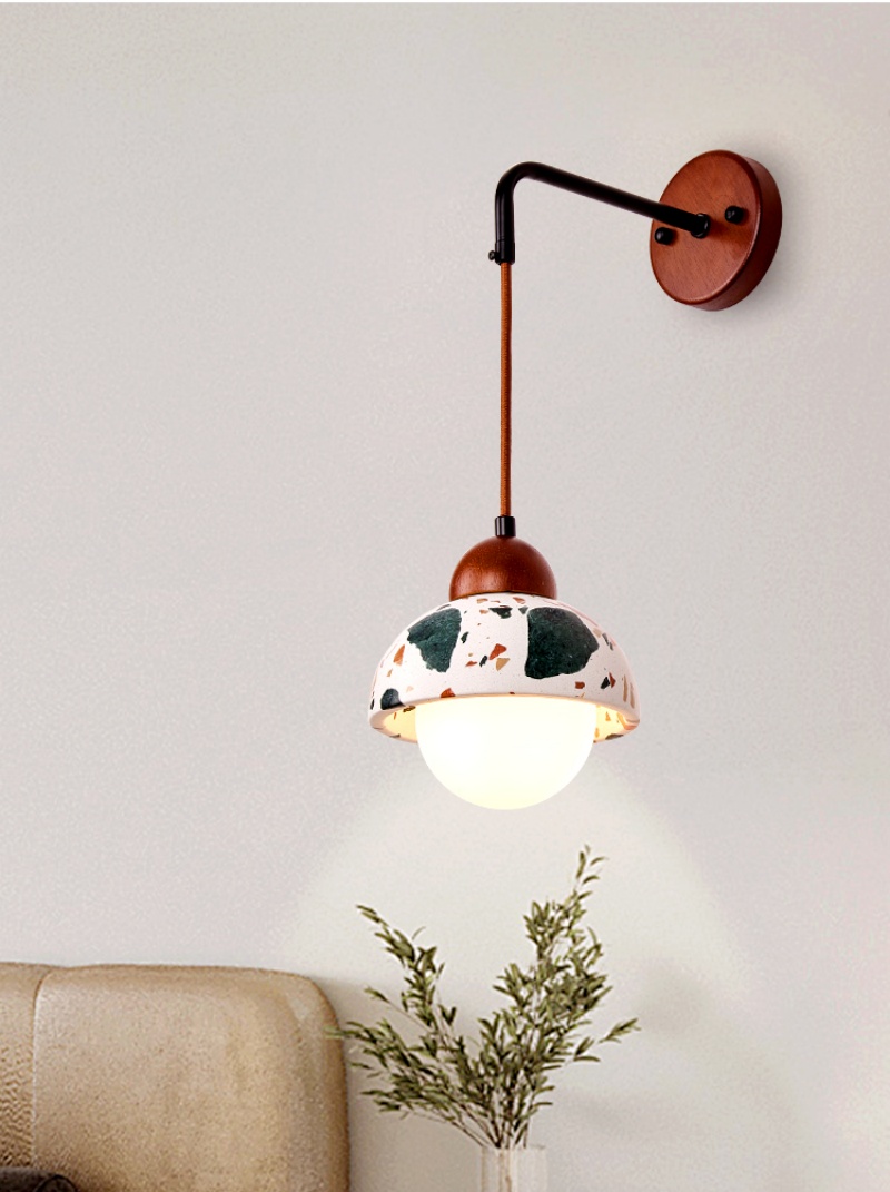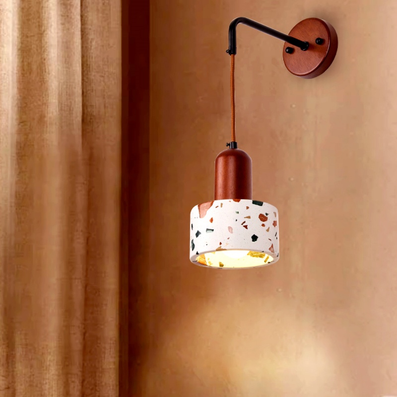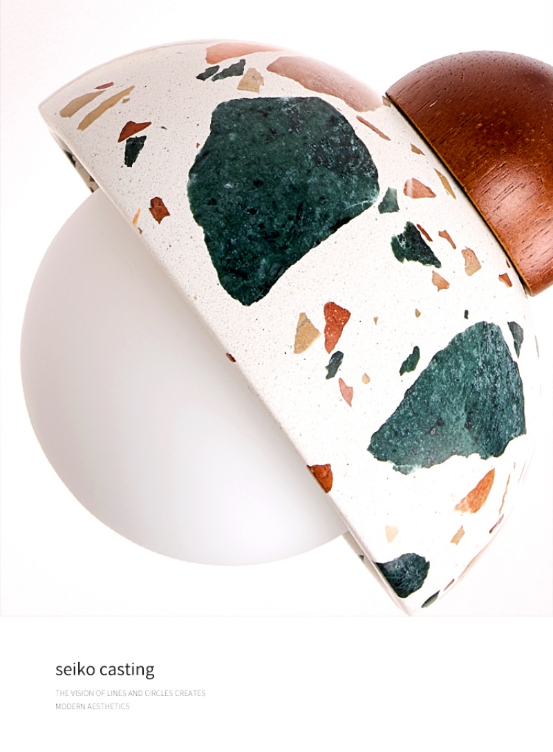 - Artisanal Material Combination: Expertly crafted from quality wood and premium terrazzo composite, this wall lamp offers exceptional durability alongside unique visual appeal. The terrazzo surface displays beautiful colorful aggregates within a solid base, while the wooden elements provide natural warmth and texture, making this wall lamp a distinctive choice for those seeking both modern style and natural elements in their lighting solutions. Each wall lamp is a unique piece due to the natural variations in the terrazzo patterns.