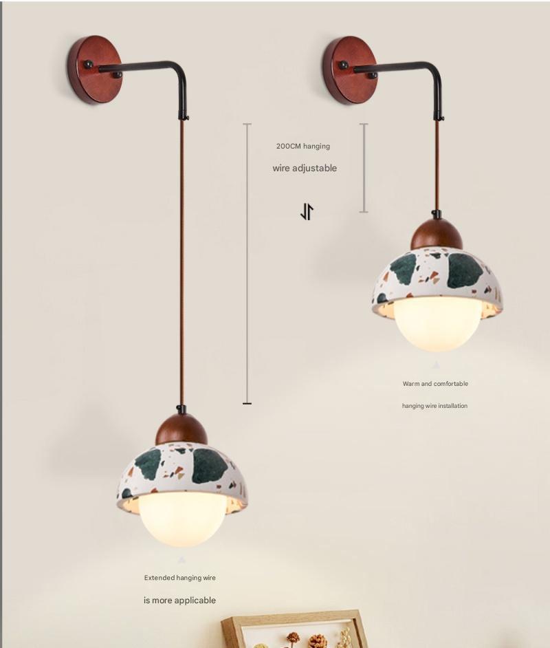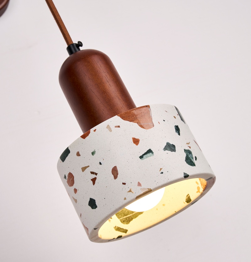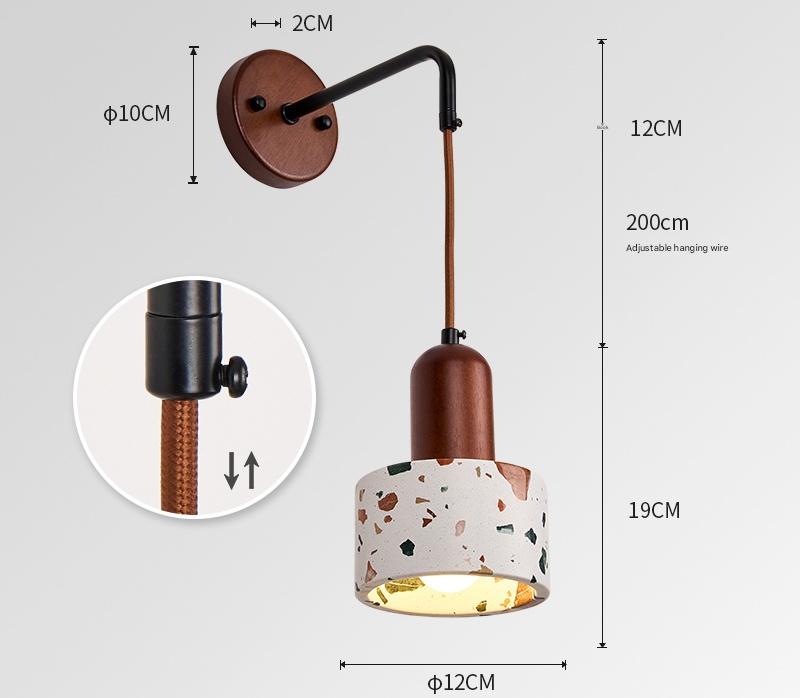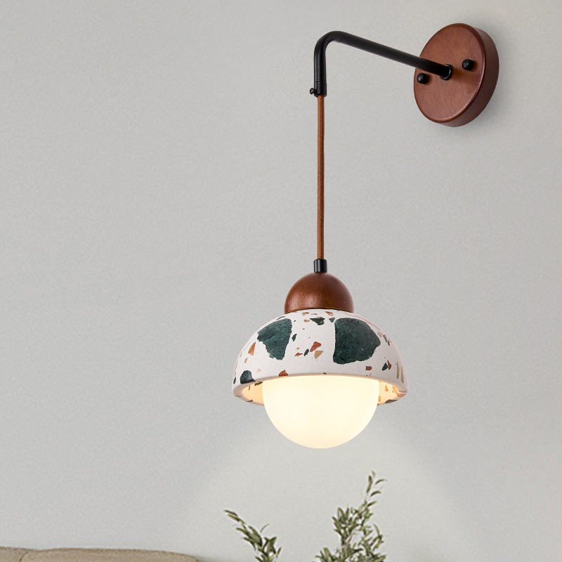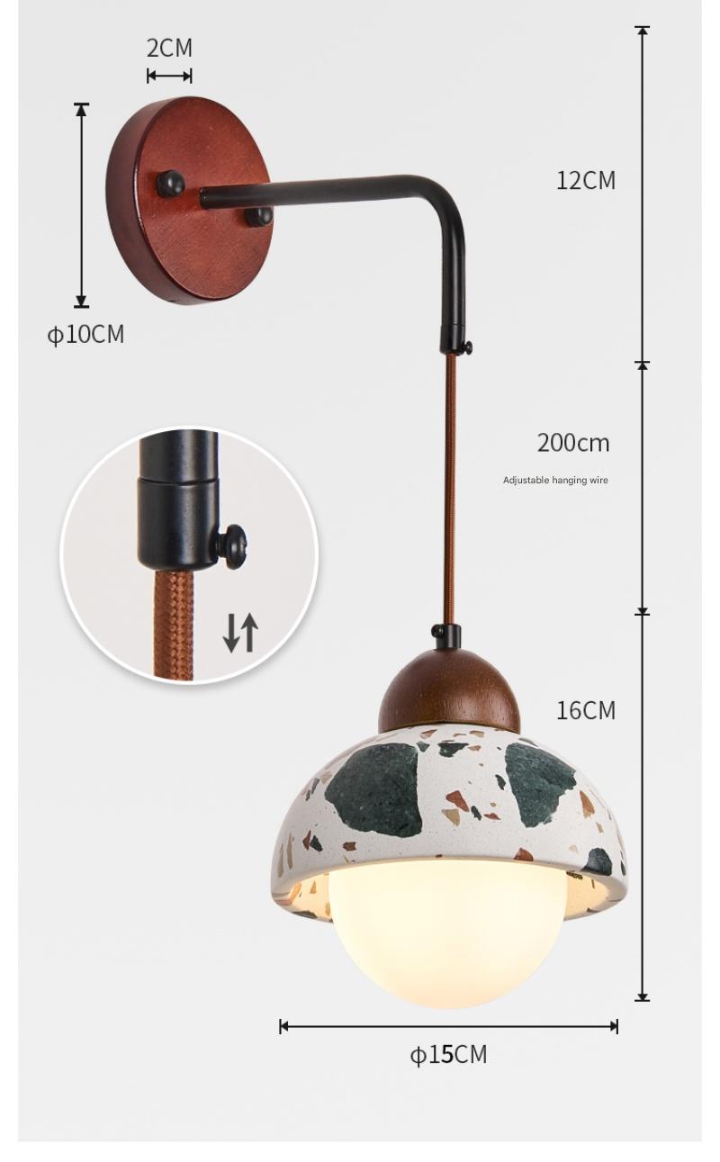 - Artisanal Material Combination: Expertly crafted from quality wood and premium terrazzo composite, this wall lamp offers exceptional durability alongside unique visual appeal. The terrazzo surface displays beautiful colorful aggregates within a solid base, while the wooden elements provide natural warmth and texture, making this wall lamp a distinctive choice for those seeking both modern style and natural elements in their lighting solutions. Each wall lamp is a unique piece due to the natural variations in the terrazzo patterns.