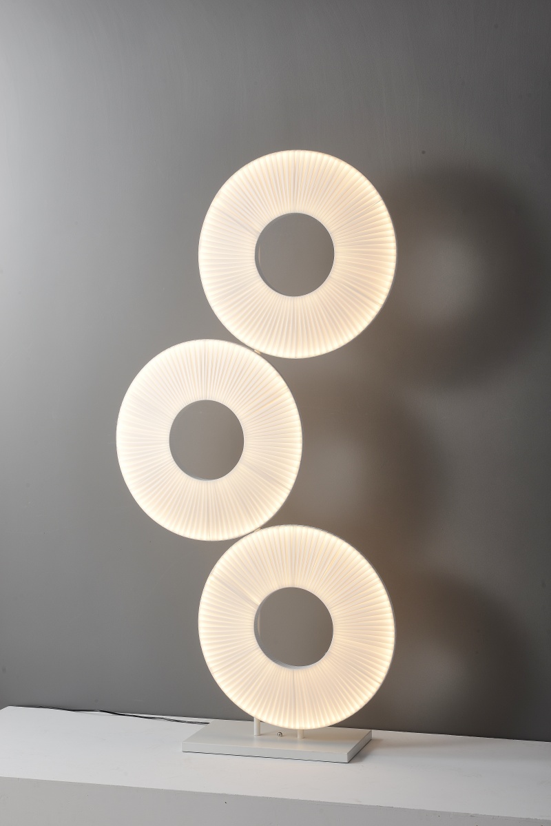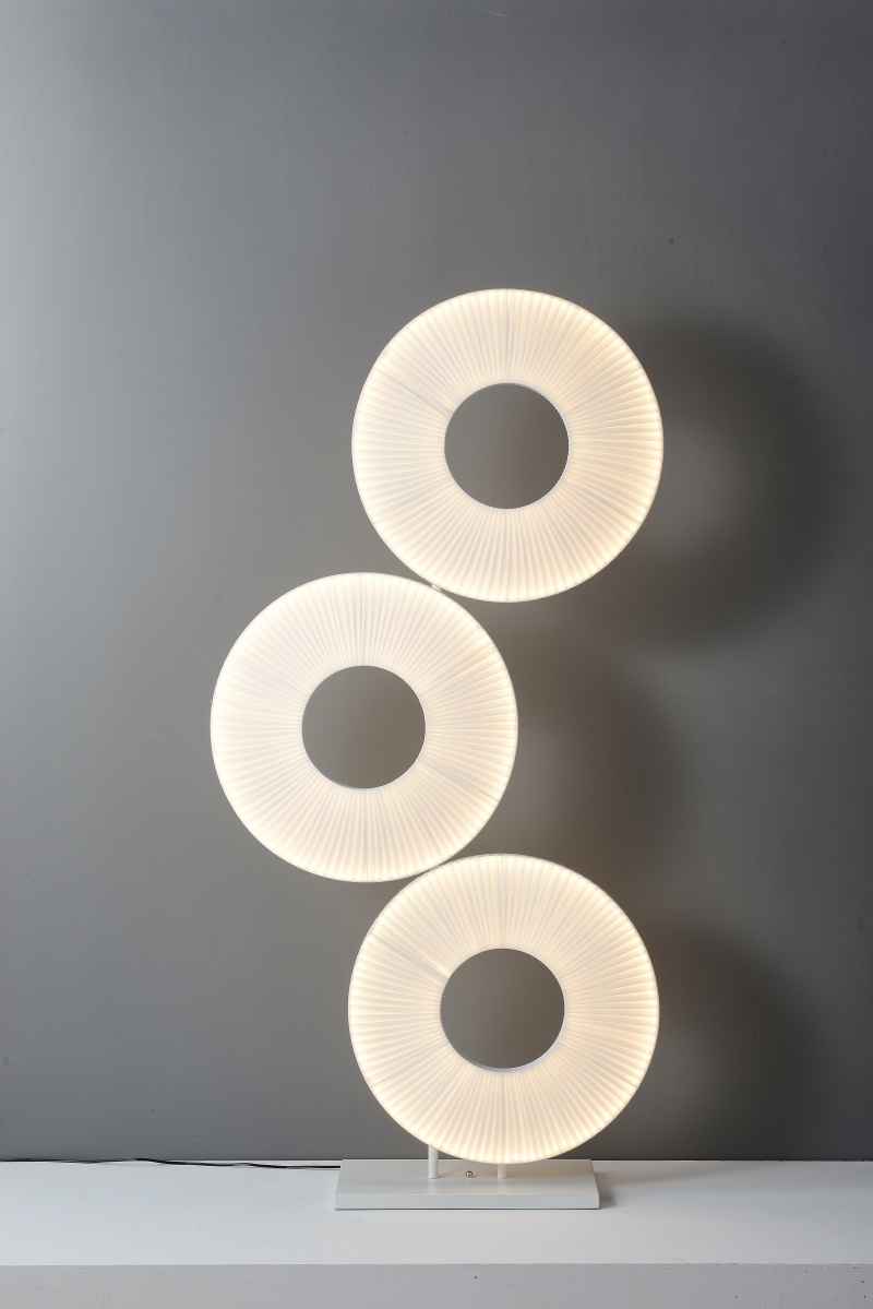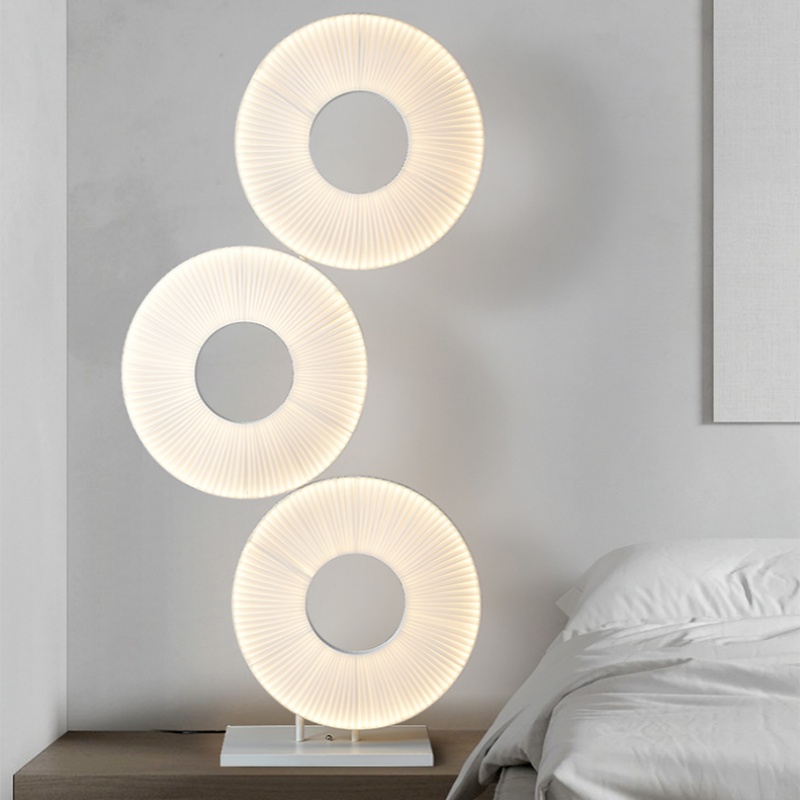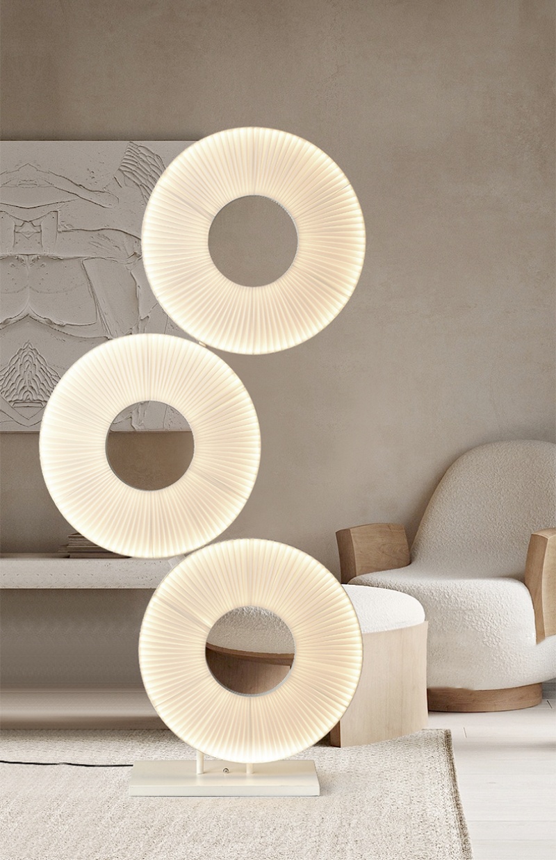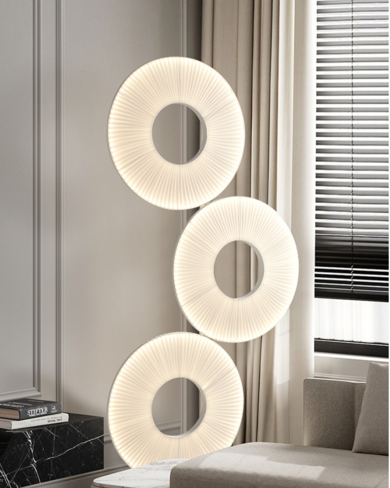 Excellent Design Concept: This H175cm white fabric floor light showcases an innovative triple-ring design that introduces a delightful and playful character to any interior space. The unique circular arrangement of this floor light creates dynamic visual interest while maintaining a clean, modern aesthetic. Whether illuminated or not, this floor light serves as a striking sculptural element that enhances contemporary, minimalist, and eclectic decors alike. The thoughtful design of this floor light makes it not just a lighting fixture but a conversation-starting piece of functional art for your home or office.