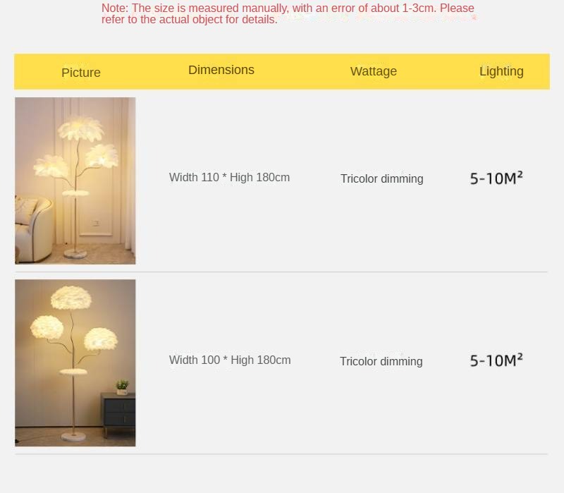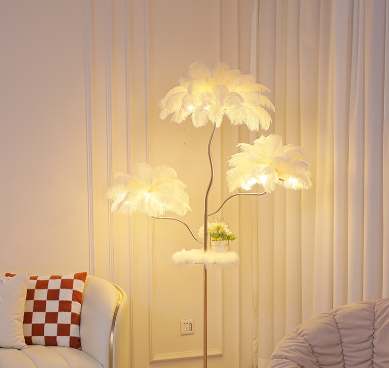 - Premium Materials for Long-lasting Durability: The combination of iron and real feathers makes this floor lamp both sturdy and luxurious. The iron frame is strong and durable, ensuring the lamp remains upright and functional over time. The feathers, delicately arranged in a cloud-like formation, soften the light and add an element of sophistication. Together, these materials ensure the lamp is not only beautiful but also long-lasting, enhancing your home for years to come.