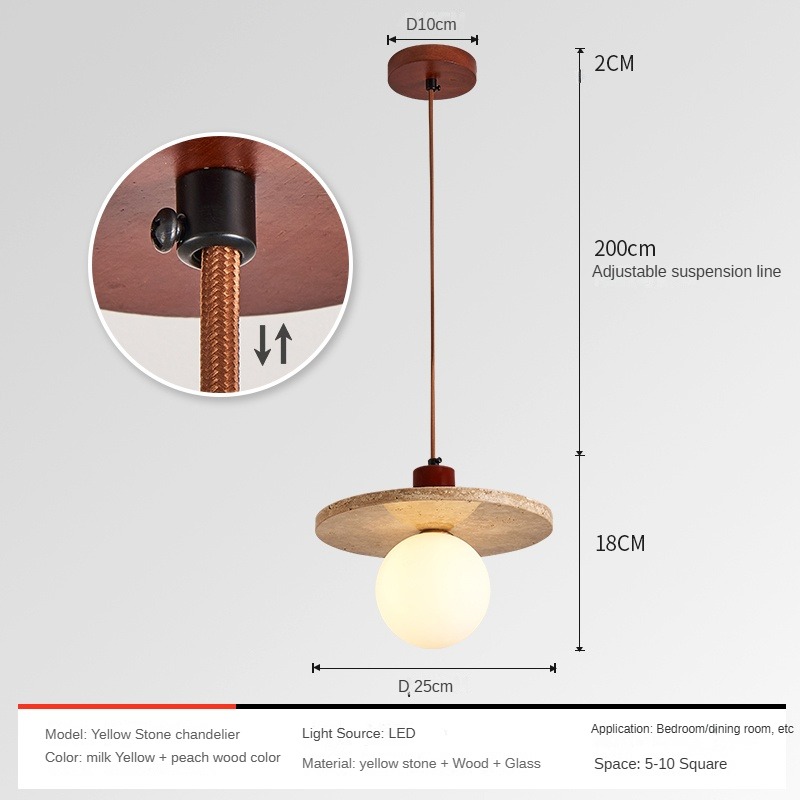 • High-Quality Materials for Longevity: This pendant light is constructed from high-quality yellow travertine stone and wood, ensuring long-lasting durability and beauty. The yellow travertine stone adds a touch of elegance and a natural texture, while the wood accents bring warmth and timeless appeal. These materials are selected for their strength and aesthetic quality, guaranteeing that the pendant light will remain a reliable and stylish fixture for years to come.