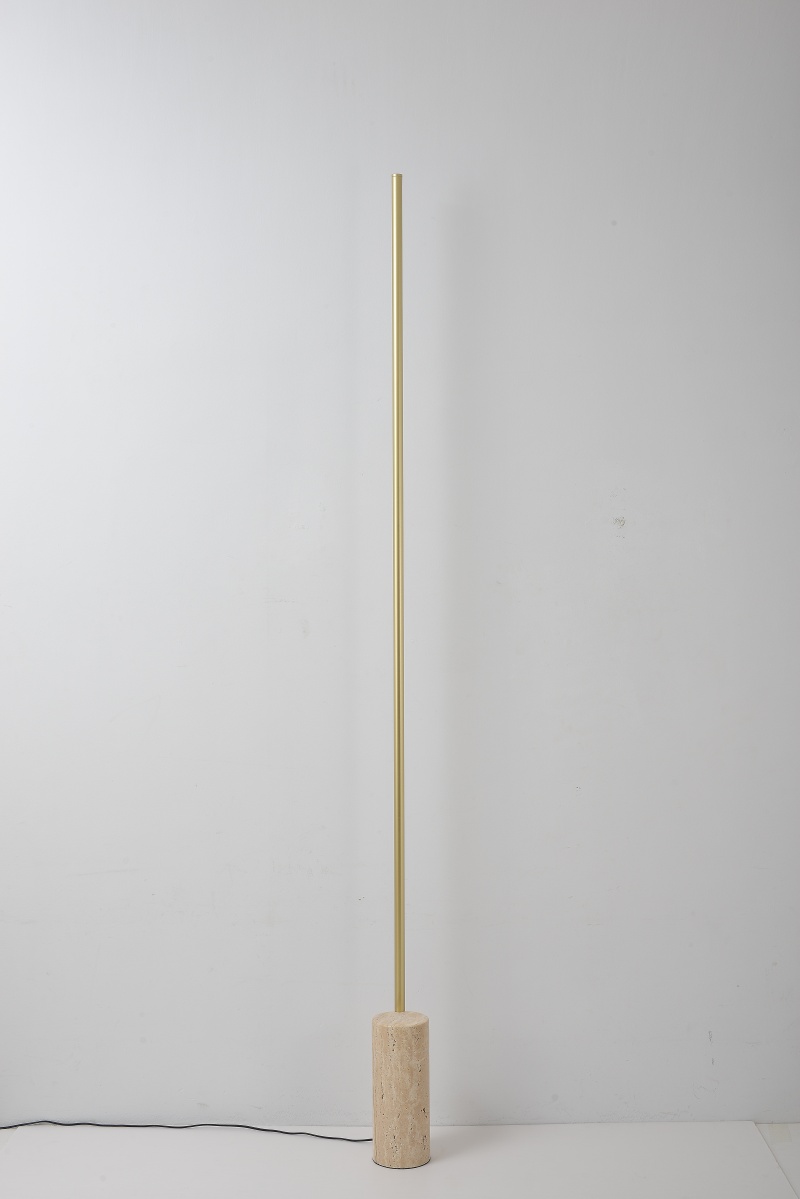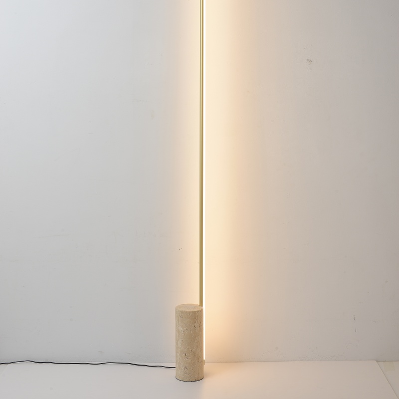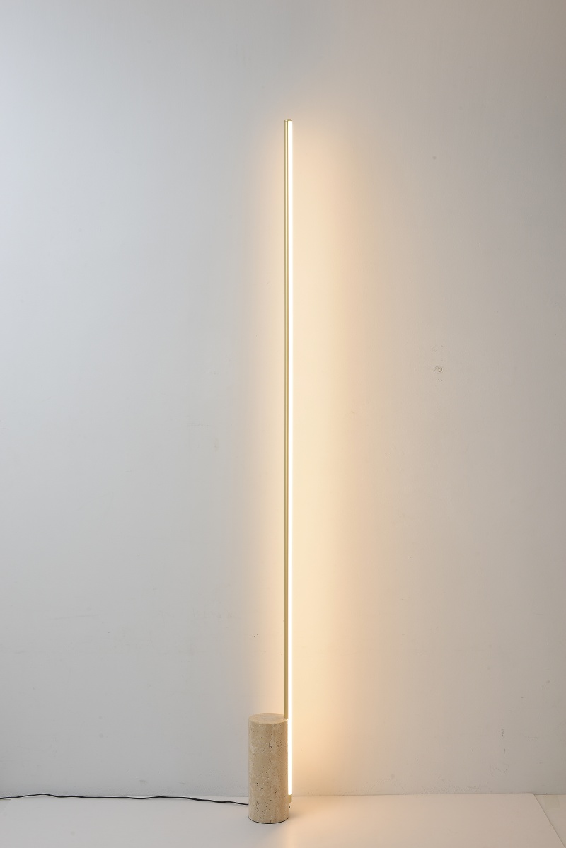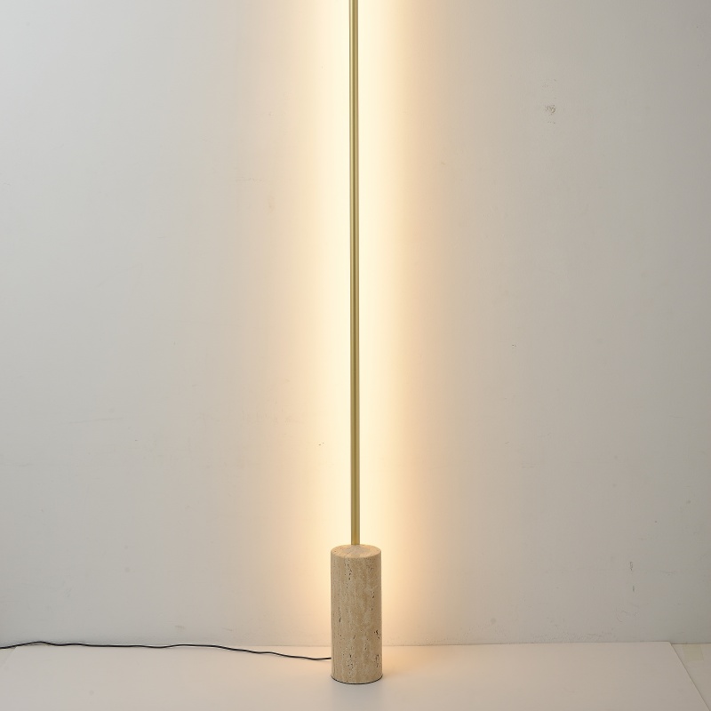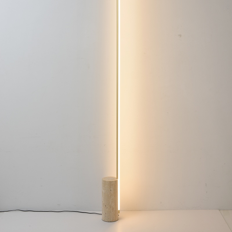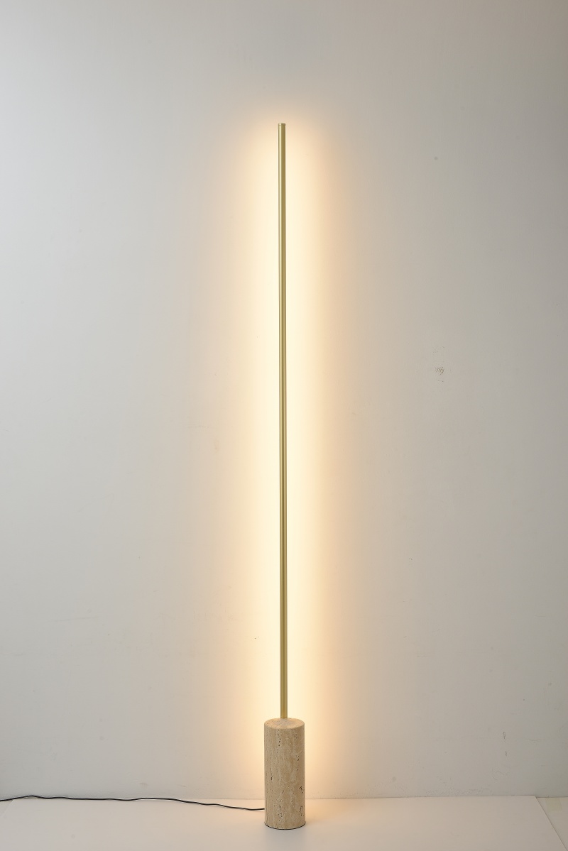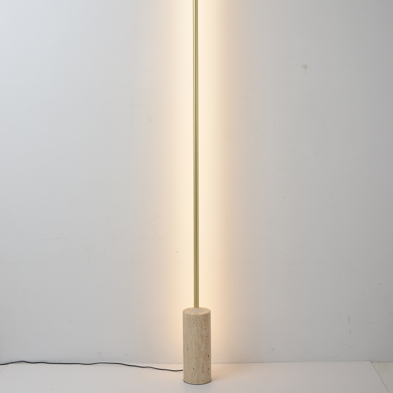 Sleek Design & Space Optimization: With its slender, straight gold metal pole and refined travertine accents, this floor lamp exudes modern elegance while maximizing space efficiency. The compact 12cm base diameter allows this floor lamp to fit effortlessly into corners, beside sofas, or in narrow areas where larger fixtures might intrude. Its minimalist design and neutral make this floor lamp a versatile addition to contemporary, industrial, or Scandinavian interiors, blending aesthetics with practicality.