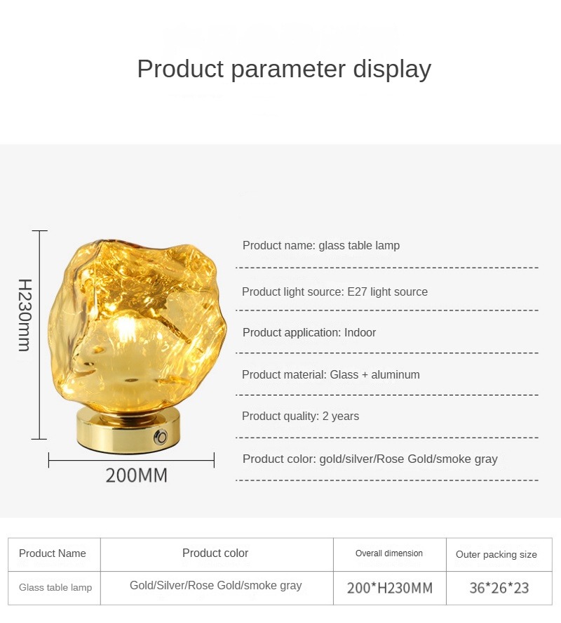• Energy-Efficient E27 LED Performance: Engineered for E27 LED technology, this table light delivers excellent energy efficiency with a 50,000-hour lifespan. Offering three color temperature options (3000K-6500K) across all four finish variants – gold, silver, rose gold, and smoke gray – this versatile table light provides customizable lighting solutions to create the perfect ambiance for dining, reading, or relaxation while significantly reducing energy consumption.