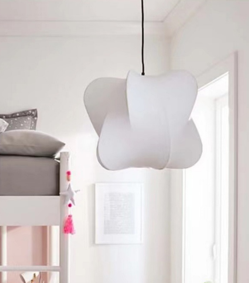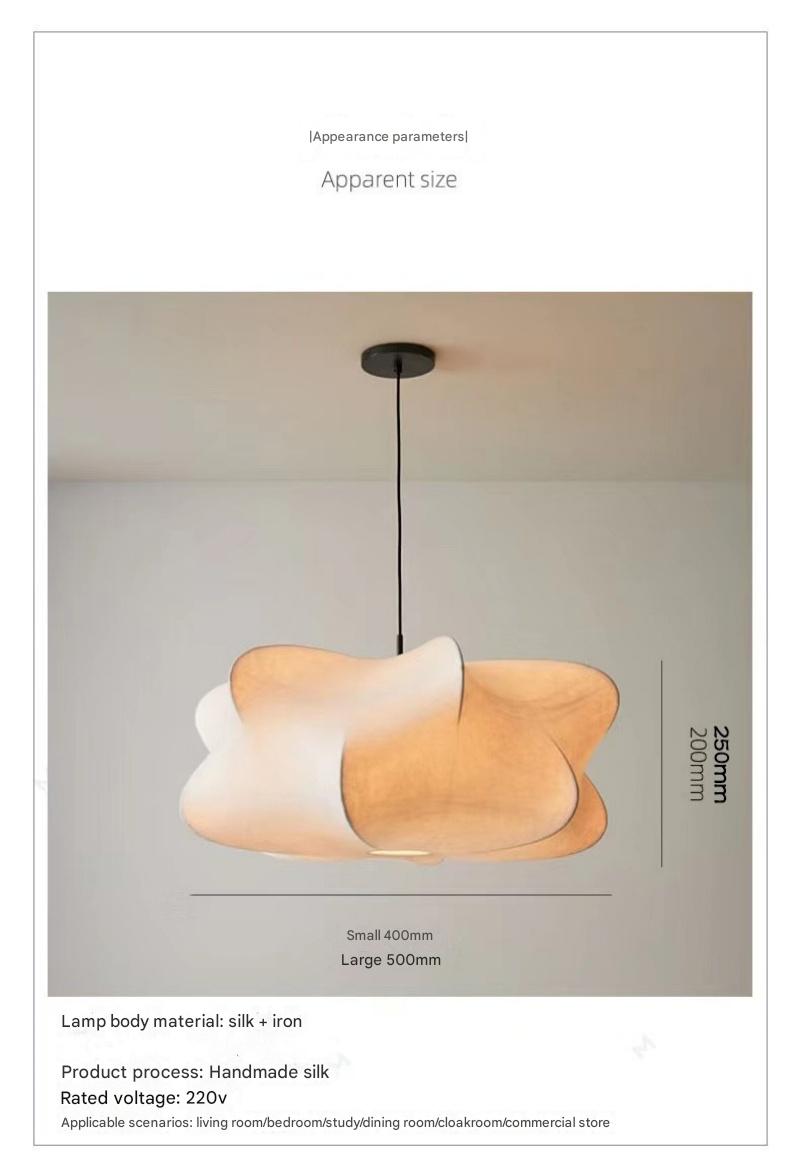 - Flowing Cloud Silhouette: This pendant lamp features softly folded panels that read like a floating cloud, casting a calm, even glow; the pendant lamp complements Modern Simple, Classic, and Nordic interiors and suits living rooms, bedrooms, study rooms, teahouses, villas, clubs, and bars.