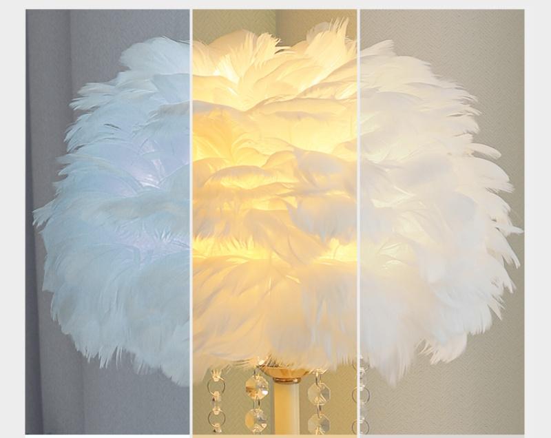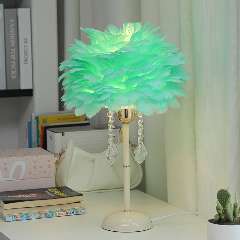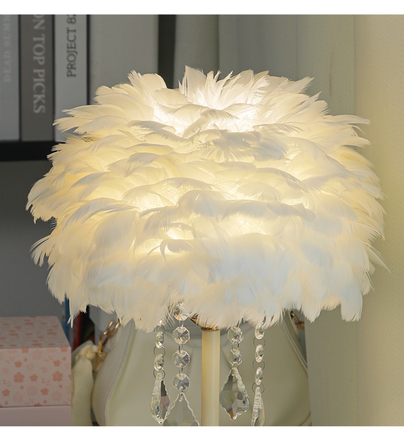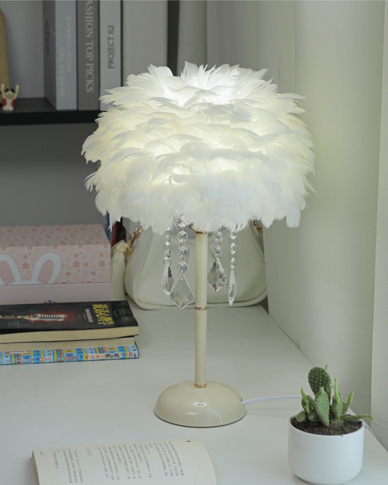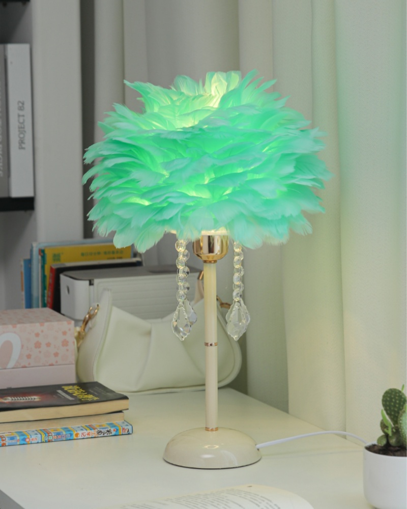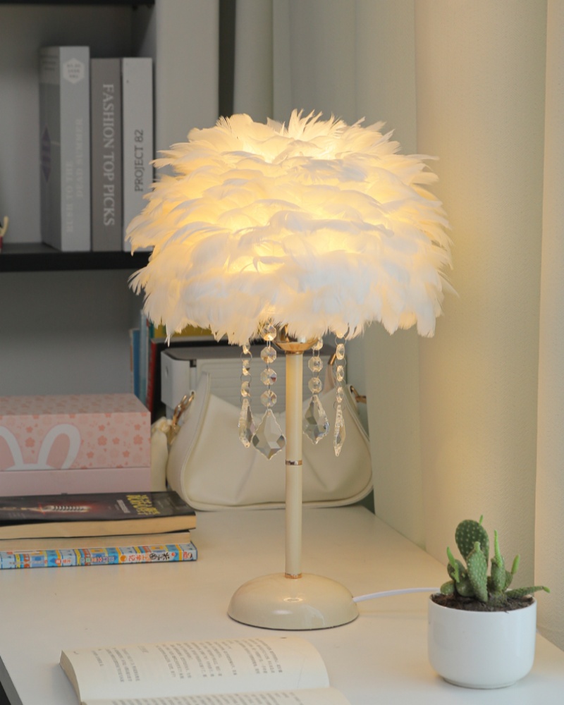 - Elegant Feathered Design: This Table lamp is designed to bring a touch of elegance and whimsy to your space. The beautifully crafted feather shade creates a soft, diffused light, enhancing any room’s ambiance. The addition of hanging crystal accents adds an extra layer of charm, making this Table lamp not only a functional light source but also a stunning decor piece. Perfect for living rooms, dining areas, restaurants, or tea rooms, this Table lamp seamlessly blends with modern interiors.