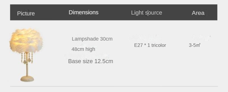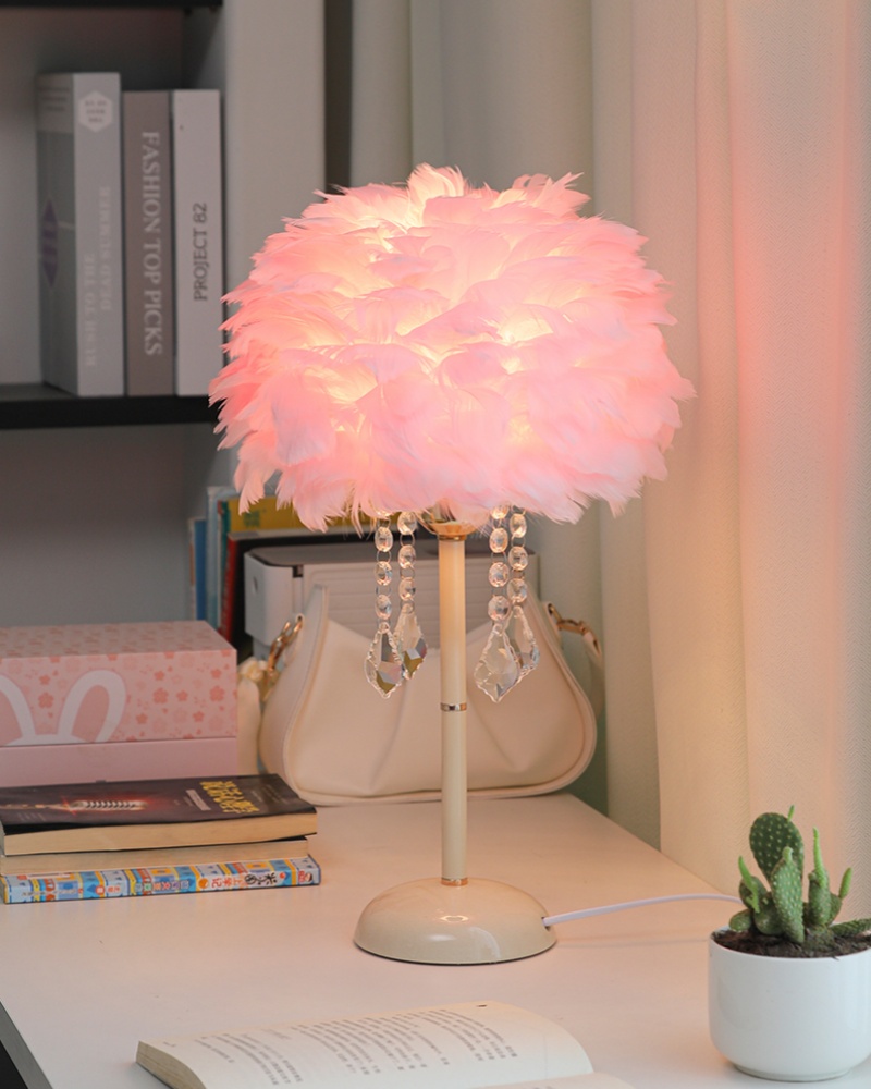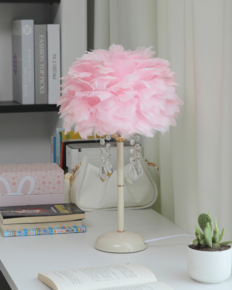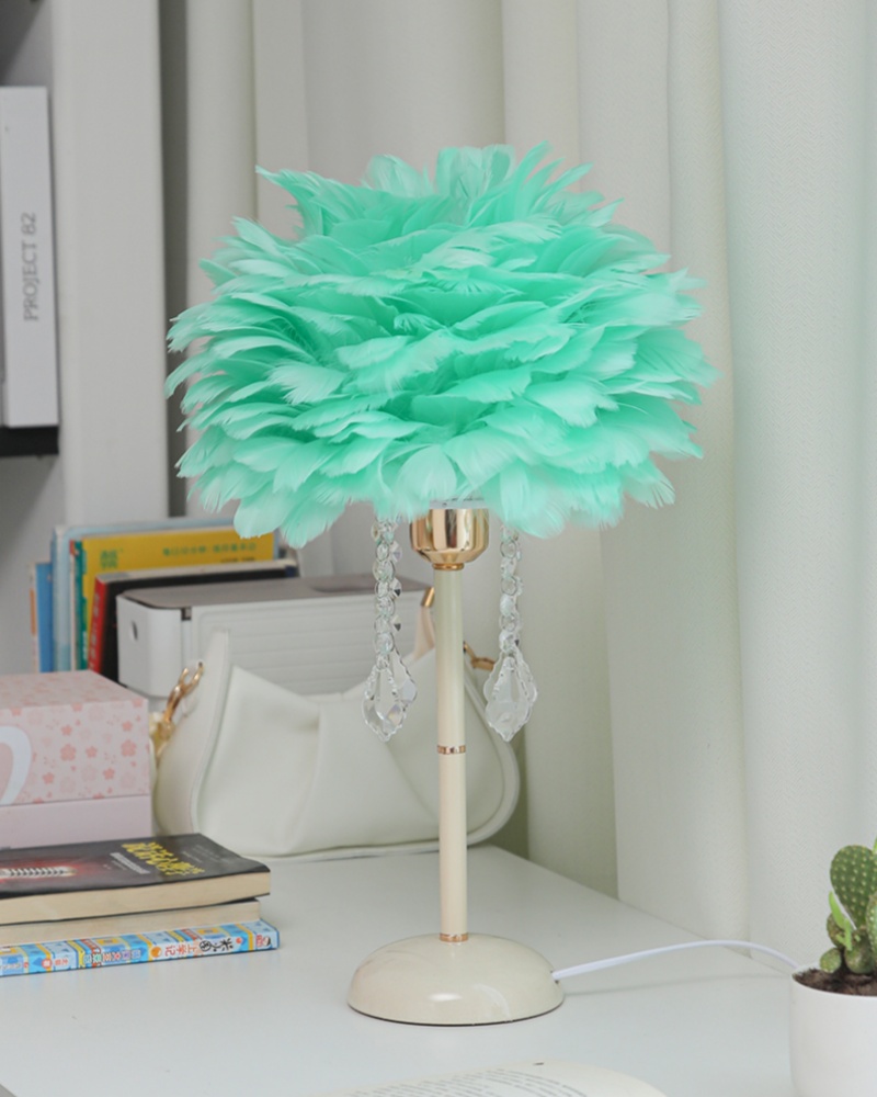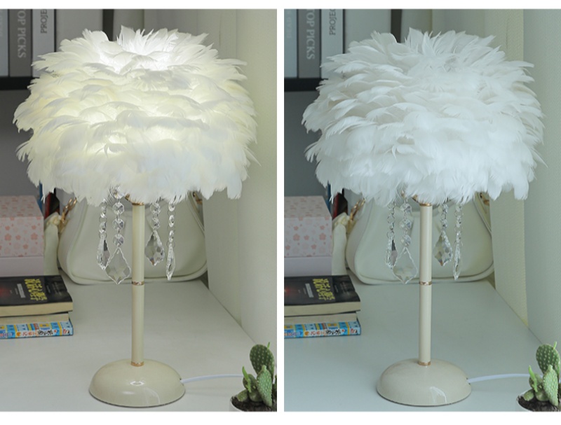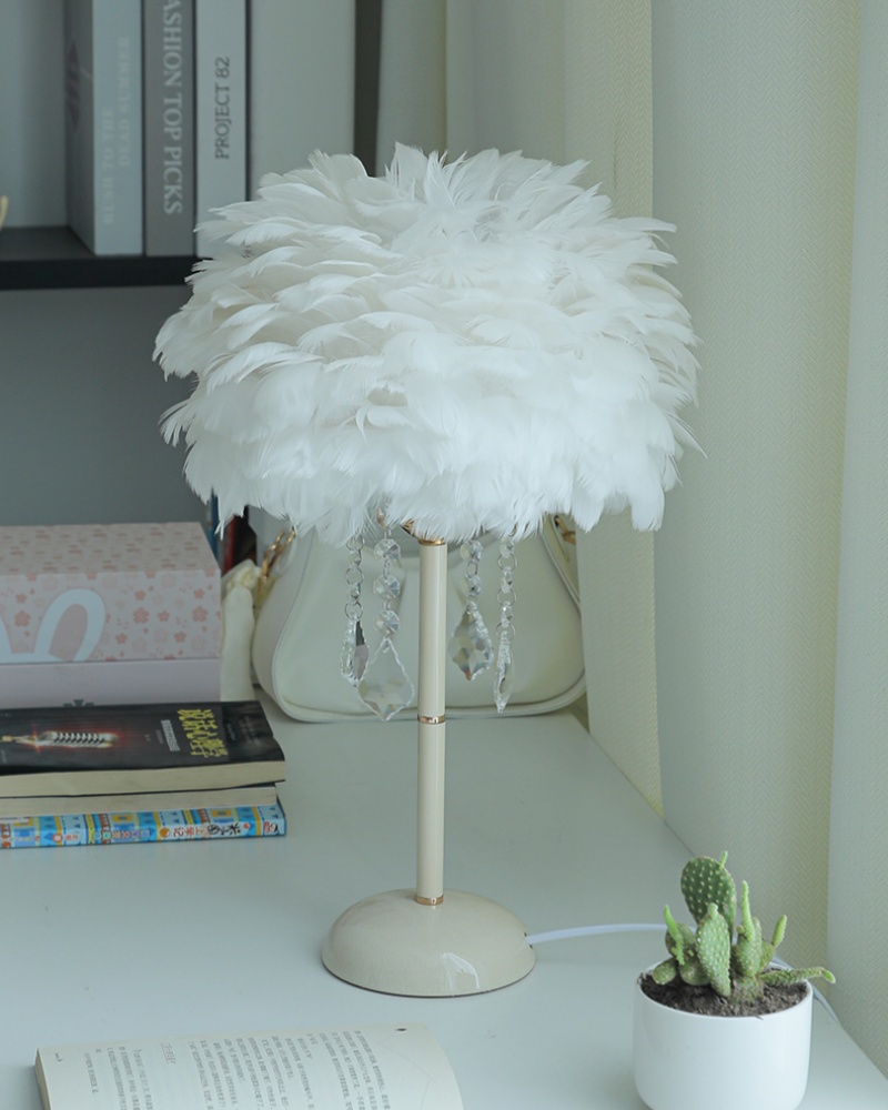 - Elegant Feathered Design: This Table lamp is designed to bring a touch of elegance and whimsy to your space. The beautifully crafted feather shade creates a soft, diffused light, enhancing any room’s ambiance. The addition of hanging crystal accents adds an extra layer of charm, making this Table lamp not only a functional light source but also a stunning decor piece. Perfect for living rooms, dining areas, restaurants, or tea rooms, this Table lamp seamlessly blends with modern interiors.